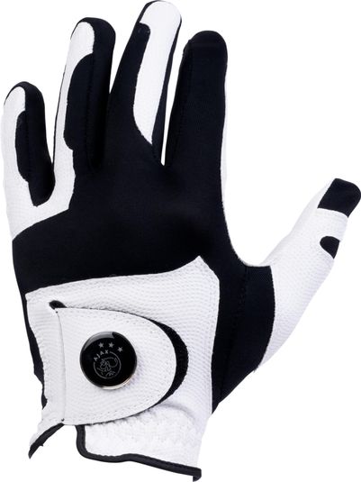 Ajax true fit glove, one size fits most. Available for right-handed players. Multi directional material, all weather glove. Anti-slip technology unmatched grip performance and quick dry material.