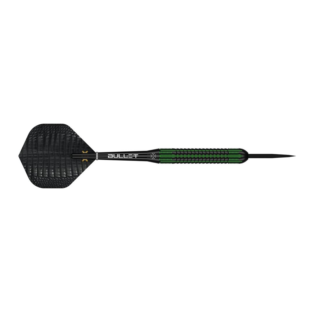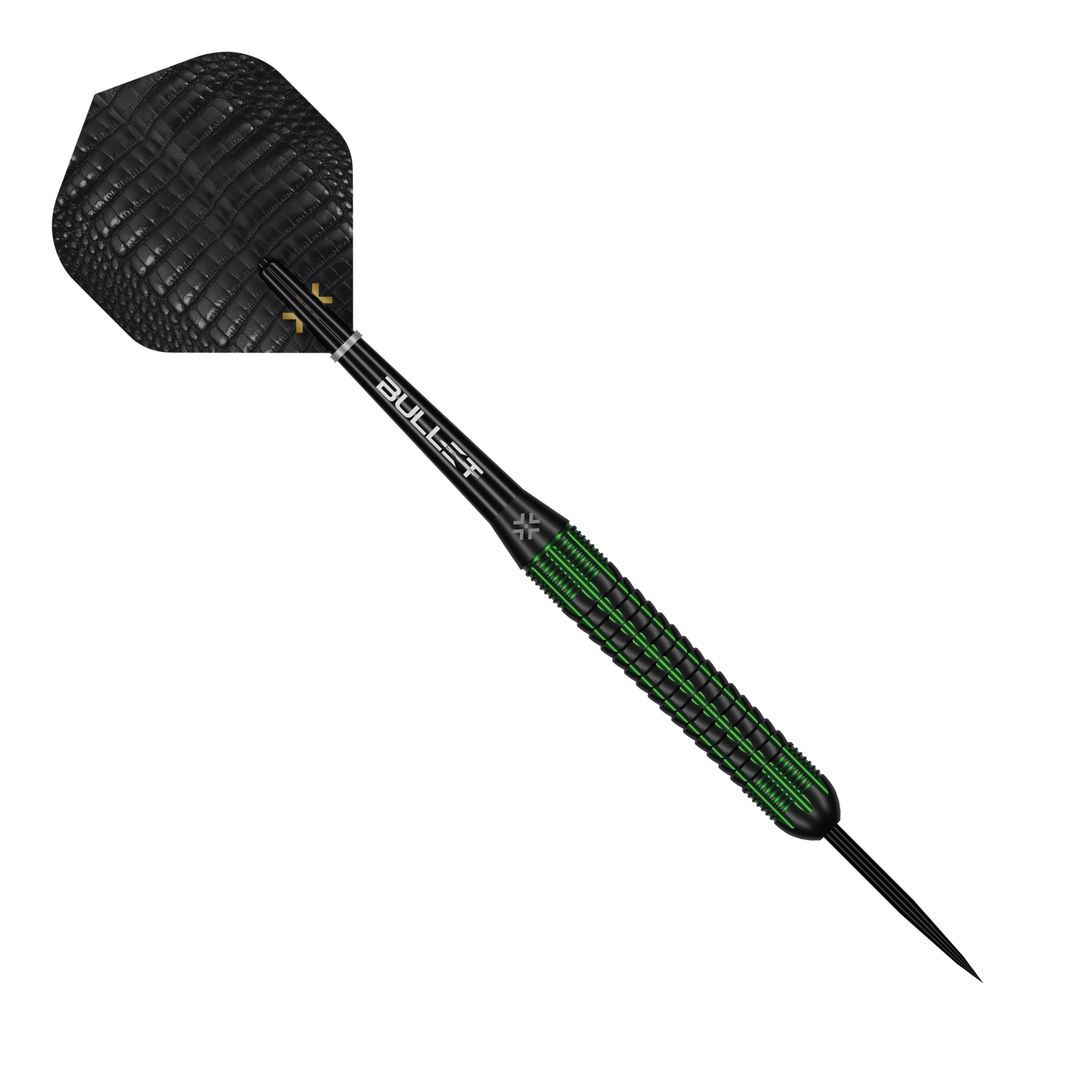 Born from the fierce instinct of a predator, the Gator Brass strikes with relentless, calculated power and unwavering precision. A straight barrel adorned with a Gator scale grip, black base with each groove accented in striking green. These darts are forged for the APEX player, striking the perfect balance between aesthetic aggression and sophisticated engineering.