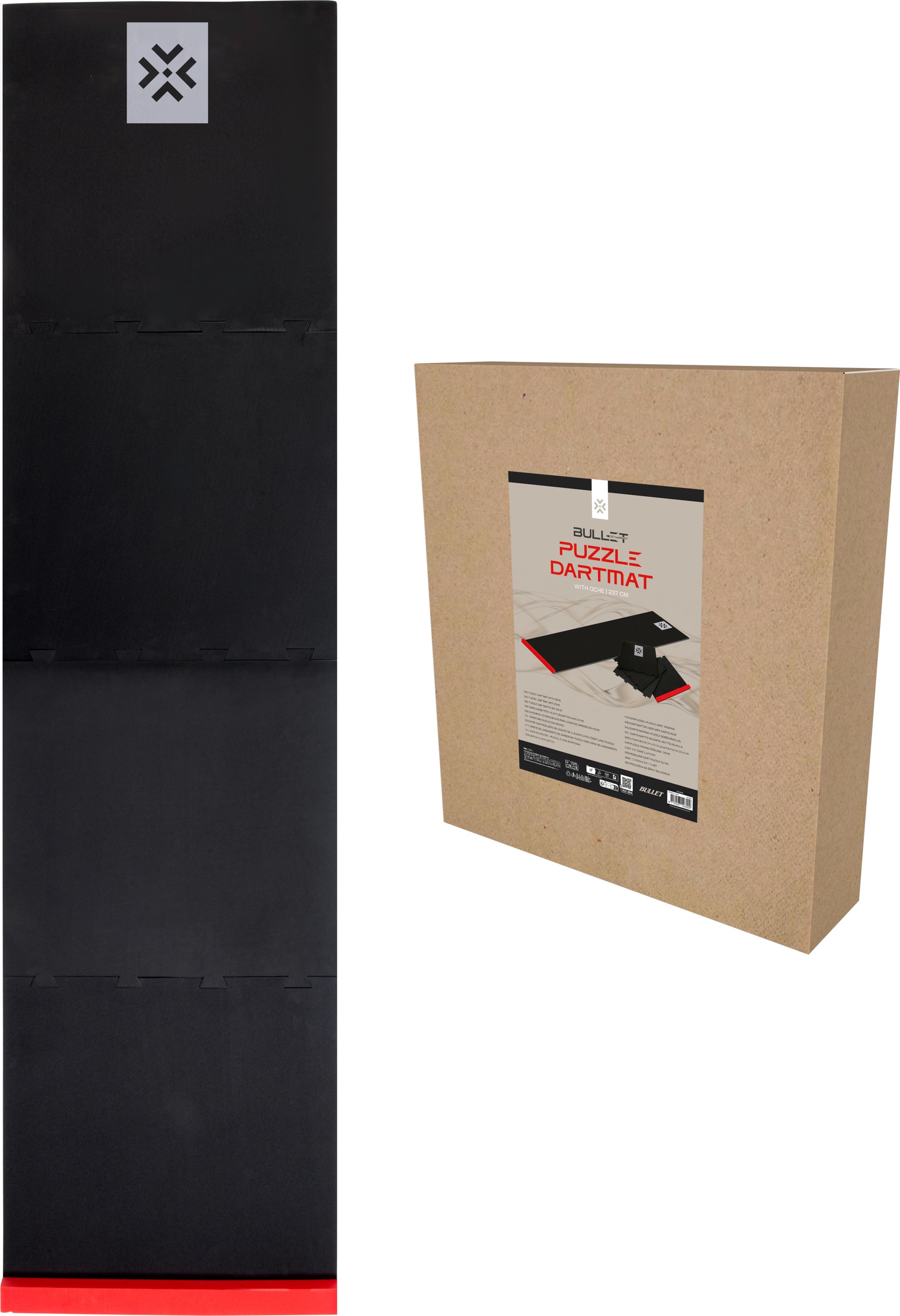 Protect your floors and elevate your dart setup with the Bullet Puzzle Dart Mat. Designed with interlocking puzzle pieces, this mat offers customization coverage and a secure fit around your dartboard area. Made from durable, non-slip material, it cushions dropped darts and prevents floor damage, while also marking official throw lines for consistent play. Easy to assemble, store, and clean – ideal for both casual players and serious darters.
