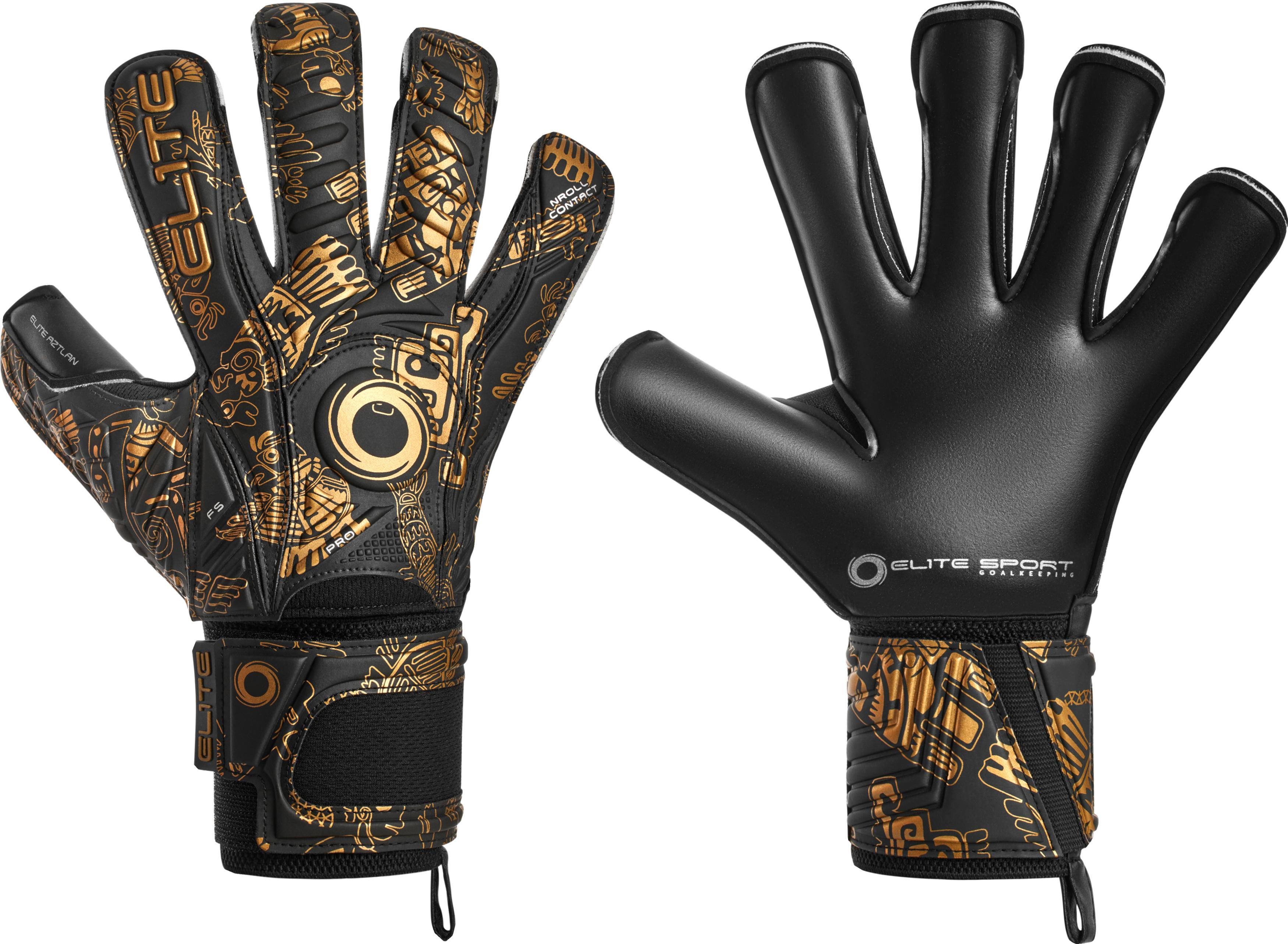 AZTLAN: Palm: 4 mm of ES-V Game Line latex for excellent grip with 4 mm of backing foam. Palm Cut: NRoll cut with a wrapped thumb. Air Ventilation Management AVM™ stitched into the finger gussets. Backhand: 4 mm durable PS latex + 4 mm reinforced backing foam on the Shock Zone + Air Ventilation Management AVM™ fabric. Finger Support: 5 removable finger spines for extra finger support. Wrist Closure: Elastic wristband and a 360° latex wrist strap to provide more stability and adhesion to the wrist with a rubber pull tab. Conditions: Outstanding performance in all weather conditions. Great in the summer heat due to AVM™ in fingers. Sizes: Available in sizes 5-11.