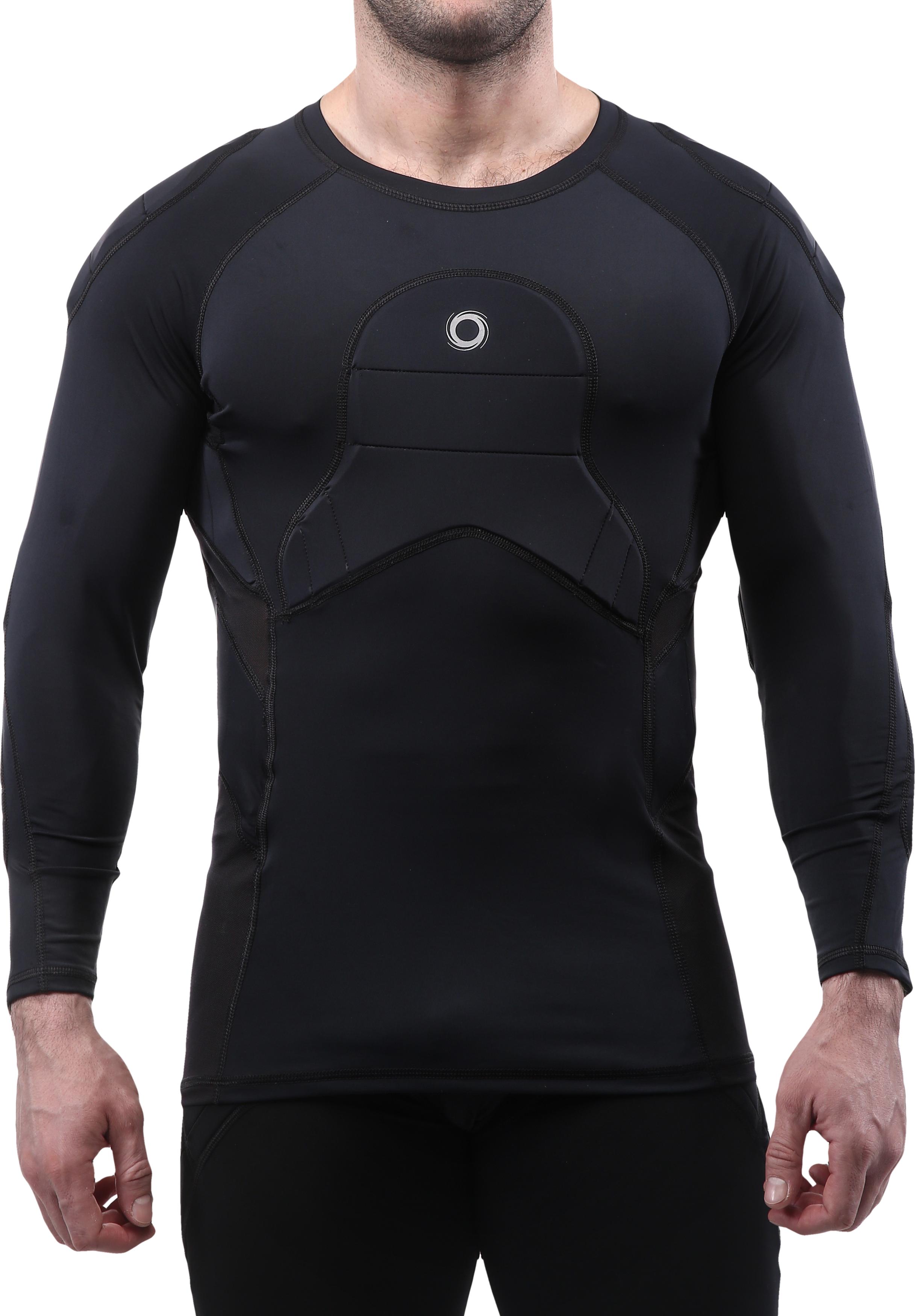Risk it all for your team when you wear your Elite BaDS* ¾ Sleeve, Padded Compression Shirt. The super durable compression fabric is reinforced with a rib and breast plate, elbow pads and shoulder pads for added protection from turf burns and impact injuries. Air Ventilation Management AVM™ is strategically placed in the back and rib areas to regulate body temperature. Made of a blend of breathable polyester and Lycra with moisture wicking, and urethane padding foam.
