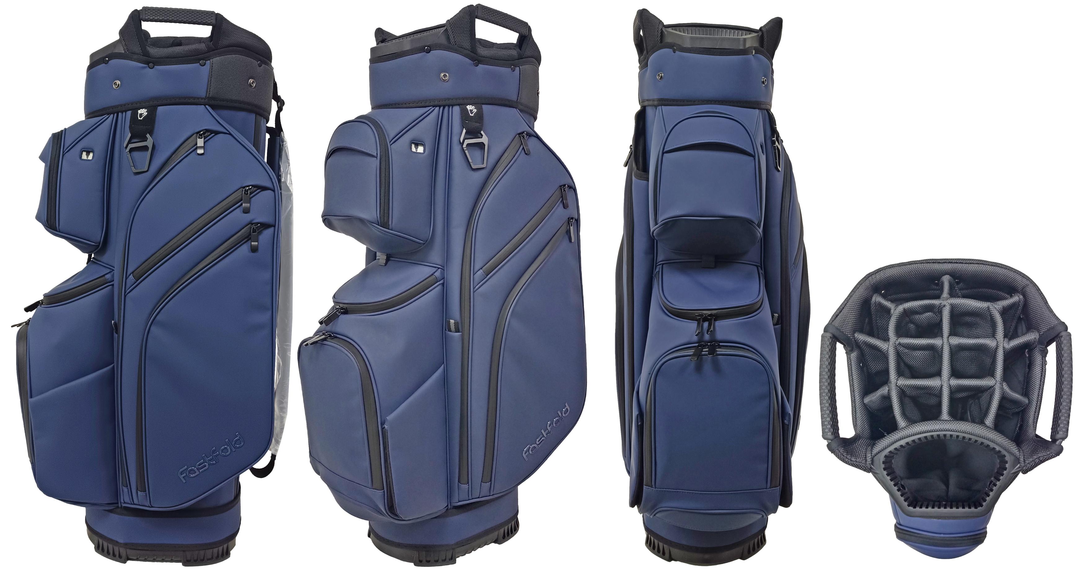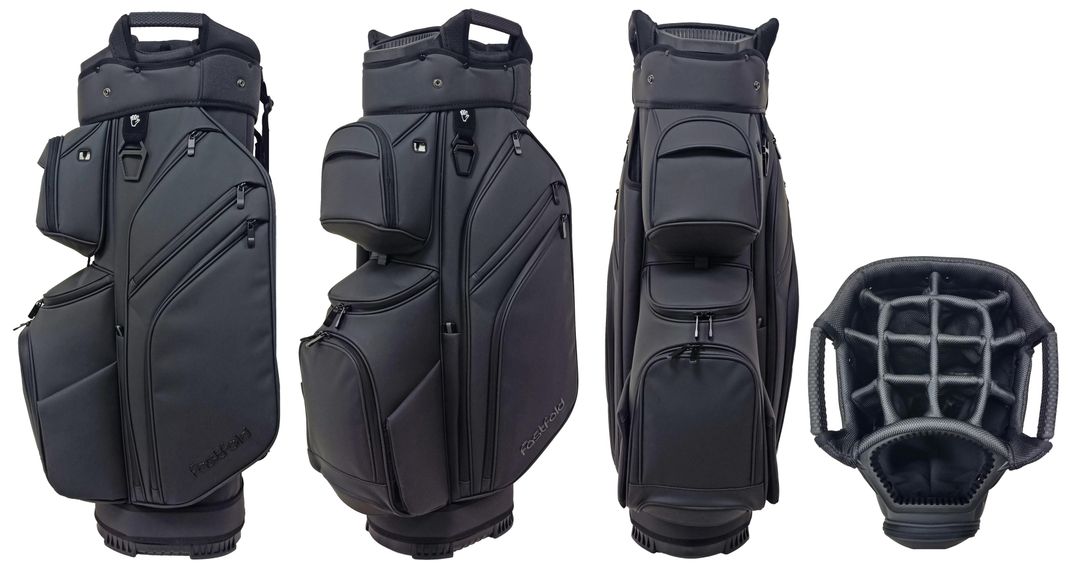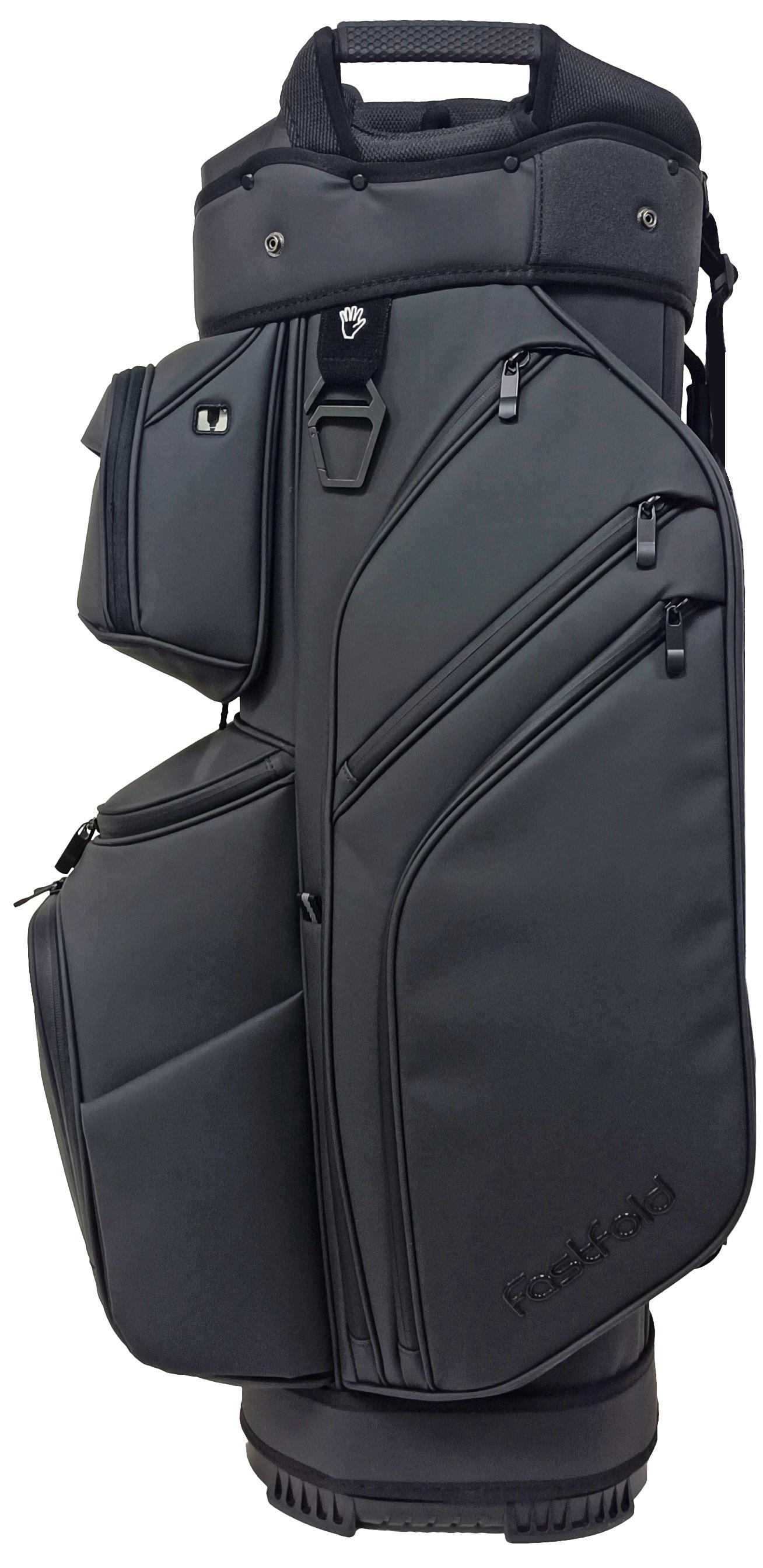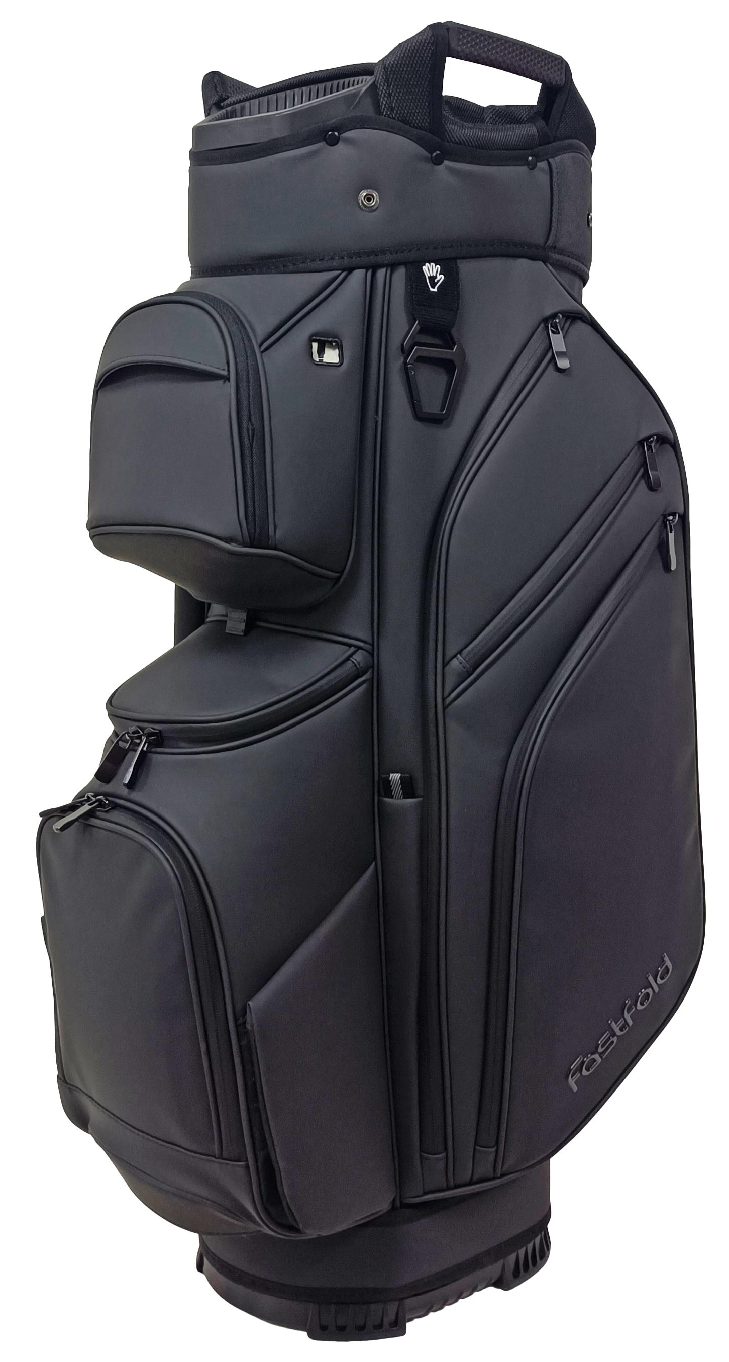 The Fastfold 9.5″ Cart bag Elegance Ultra Dry combines luxury with performance. Its high-end material with a leather-look exudes sophistication, while the 15-way divider, putter slot, and 11 pockets keep your gear perfectly organised. Enjoy magnetic front and side pockets, two waterproof valuables pockets, and a cooler pocket for ultimate convenience. Built for comfort with deluxe padding, transport handles, and a rubber backside. With sealed zippers, a zippered rain hood, and an umbrella holder, this 3.8 kg cart bag is as practical as it is stylish!