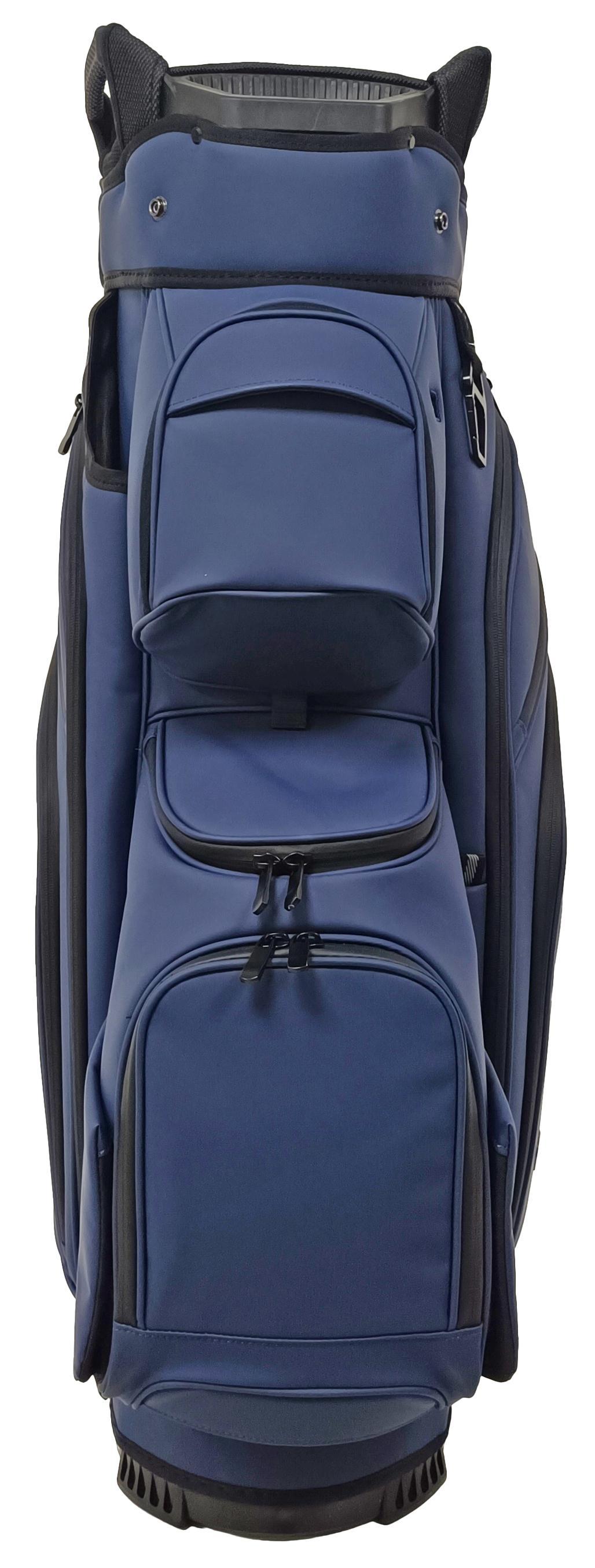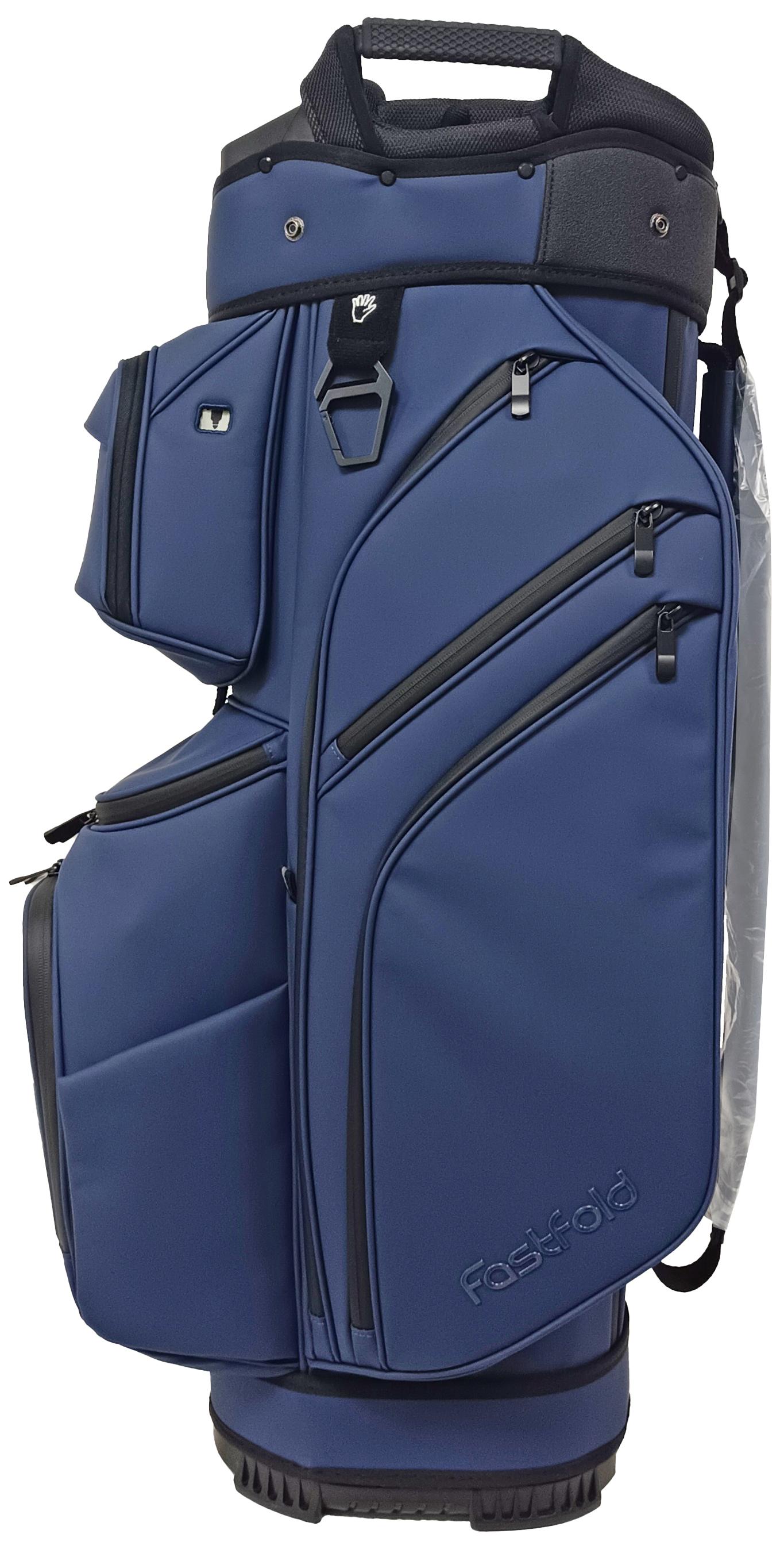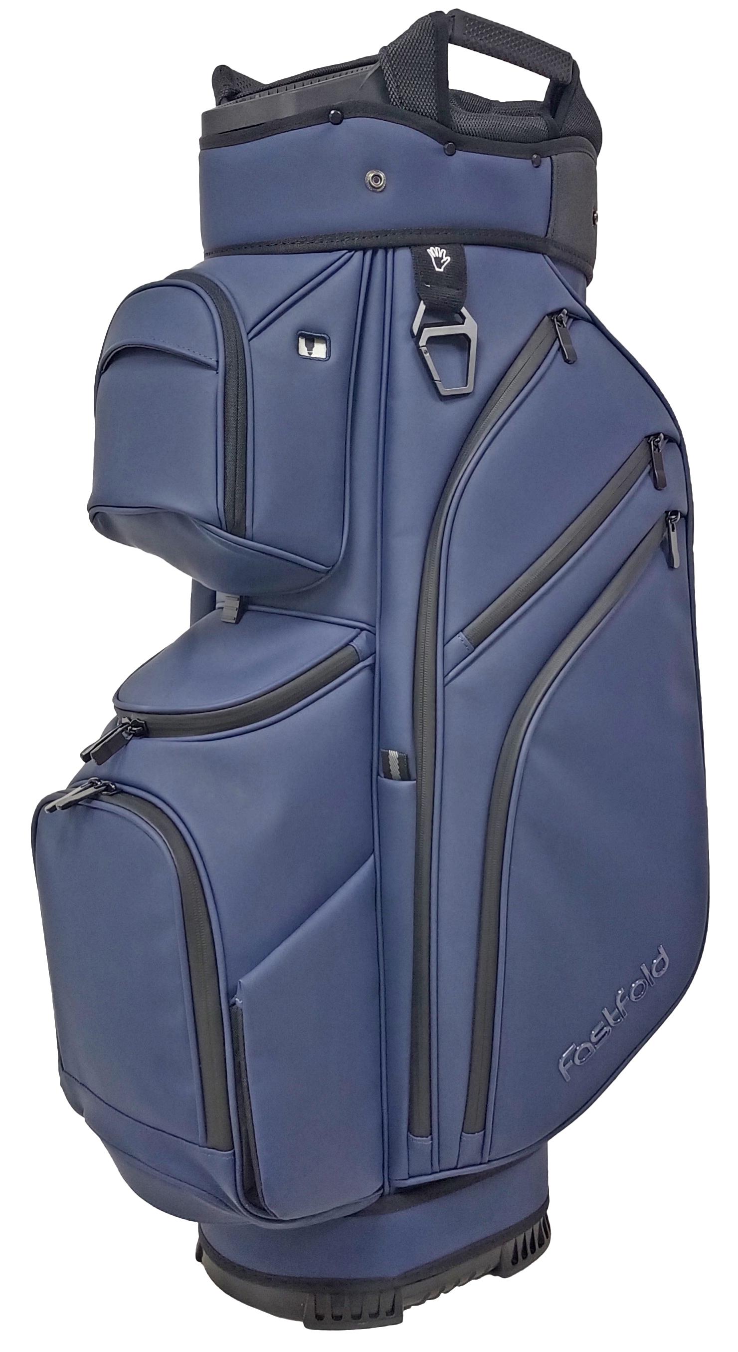 The Fastfold 9.5″ Cart bag Elegance Ultra Dry combines luxury with performance. Its high-end material with a leather-look exudes sophistication, while the 15-way divider, putter slot, and 11 pockets keep your gear perfectly organised. Enjoy magnetic front and side pockets, two waterproof valuables pockets, and a cooler pocket for ultimate convenience. Built for comfort with deluxe padding, transport handles, and a rubber backside. With sealed zippers, a zippered rain hood, and an umbrella holder, this 3.8 kg cart bag is as practical as it is stylish!