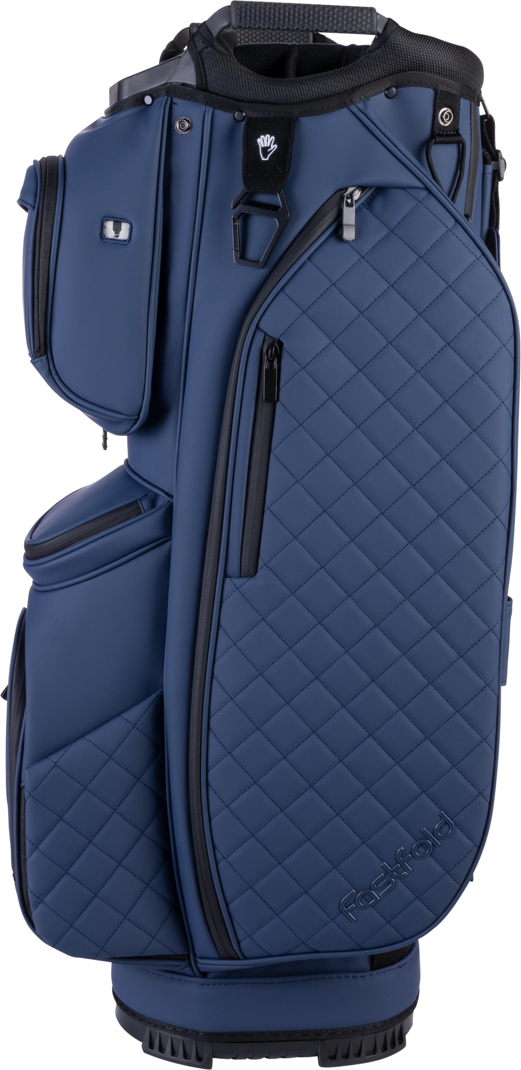 The Fastfold Elegance Diamond cart bag Ultra Dry brings luxury to the course with diamond-stitched, padded sides and a sleek, high-end design. Its 15-way divider, putter slot, and 9 pockets offer top-tier organisation, while magnetic front and side pockets, waterproof valuables pockets, and cooler pockets add premium convenience. Built for comfort with deluxe padding, smart lift handle, and transport handles. With sealed zippers, a zippered rain hood, and an umbrella holder, this 3.8 kg cart bag is the ultimate blend of elegance and performance!