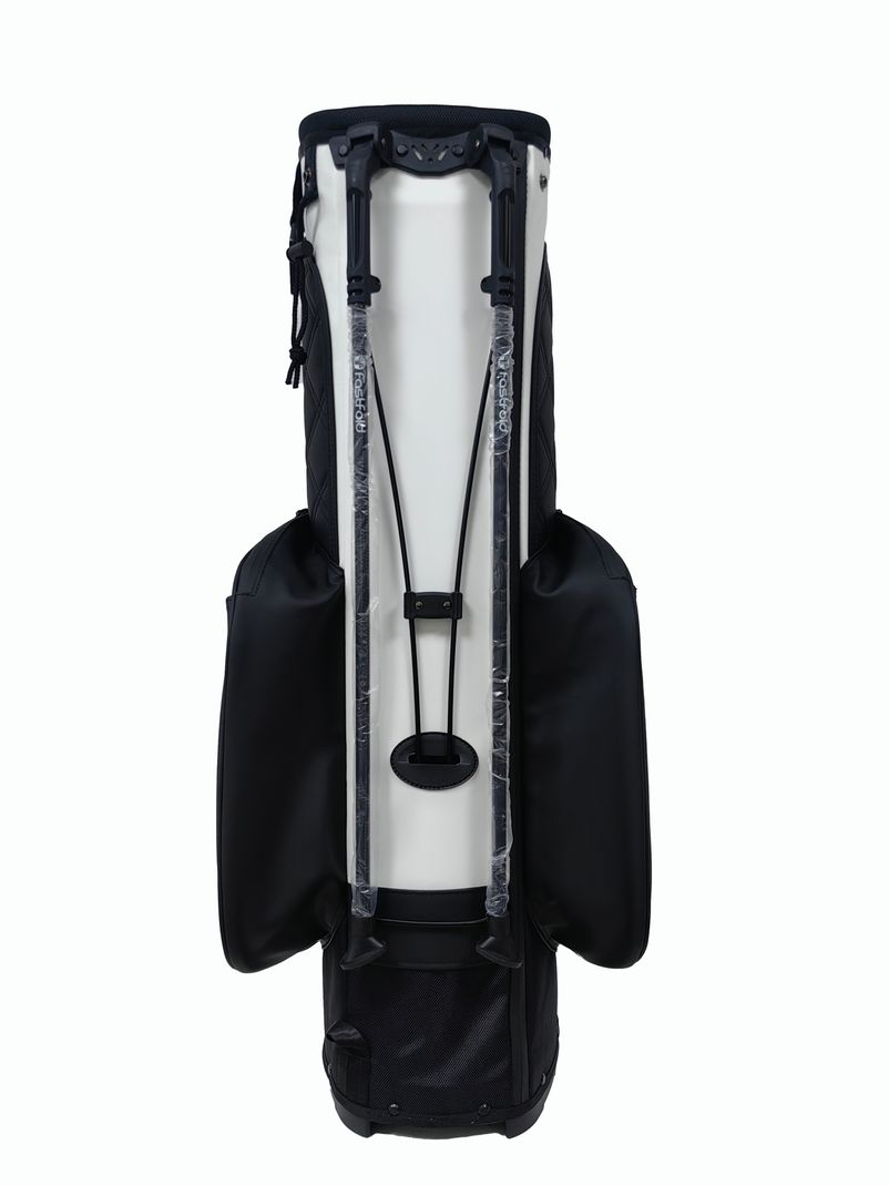 A comfortable carry strap system offers easy transport, supported by a stable stand mechanism that deploys instantly on any terrain. Practical details like the umbrella holder, towel ring, pencil holder, and included rain hood make it fully equipped for changing weather—delivering dependable performance round after round.