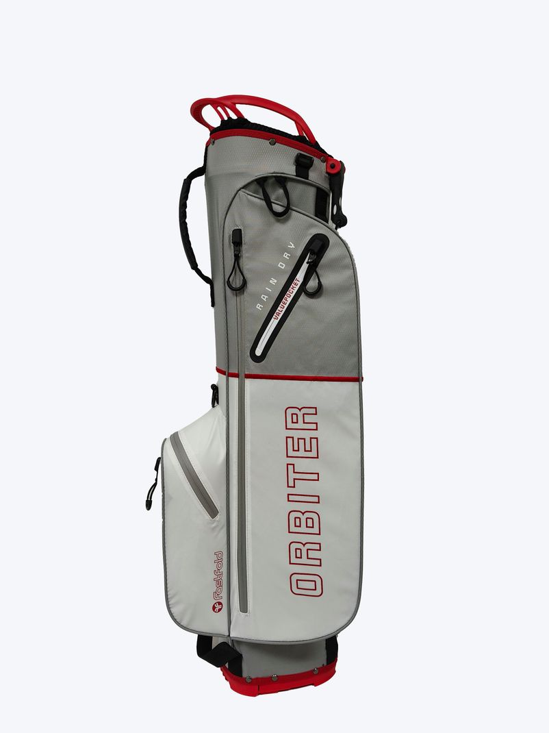 The Fastfold Orbiter 2.0 stand bag is built for golfers who want smart organization in a lightweight, ready‑for‑anything design. Its 4‑way, 7‑inch divider keeps clubs neatly separated, while four accessory pockets and a dedicated valuables pocket ensure all essentials stay secure and easy to reach. A dual strap system provides comfortable carrying, supported by a stable stand mechanism for quick setup on any surface. With an umbrella holder, towel ring, and included rain hood, it’s fully equipped for changing conditions—making it a dependable companion for every round.