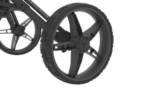 11.5" rear wheels and a 9.5" swivel front wheel for smooth rolling