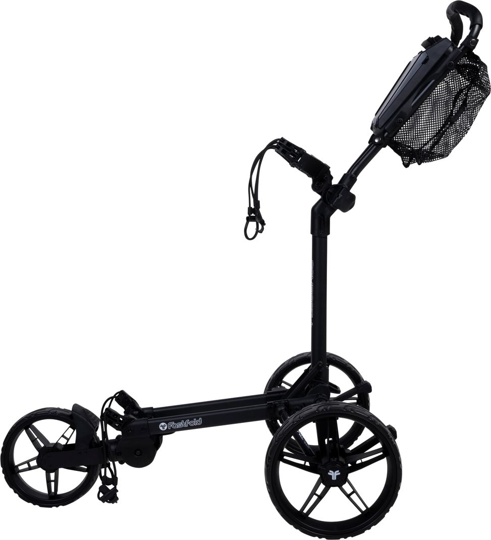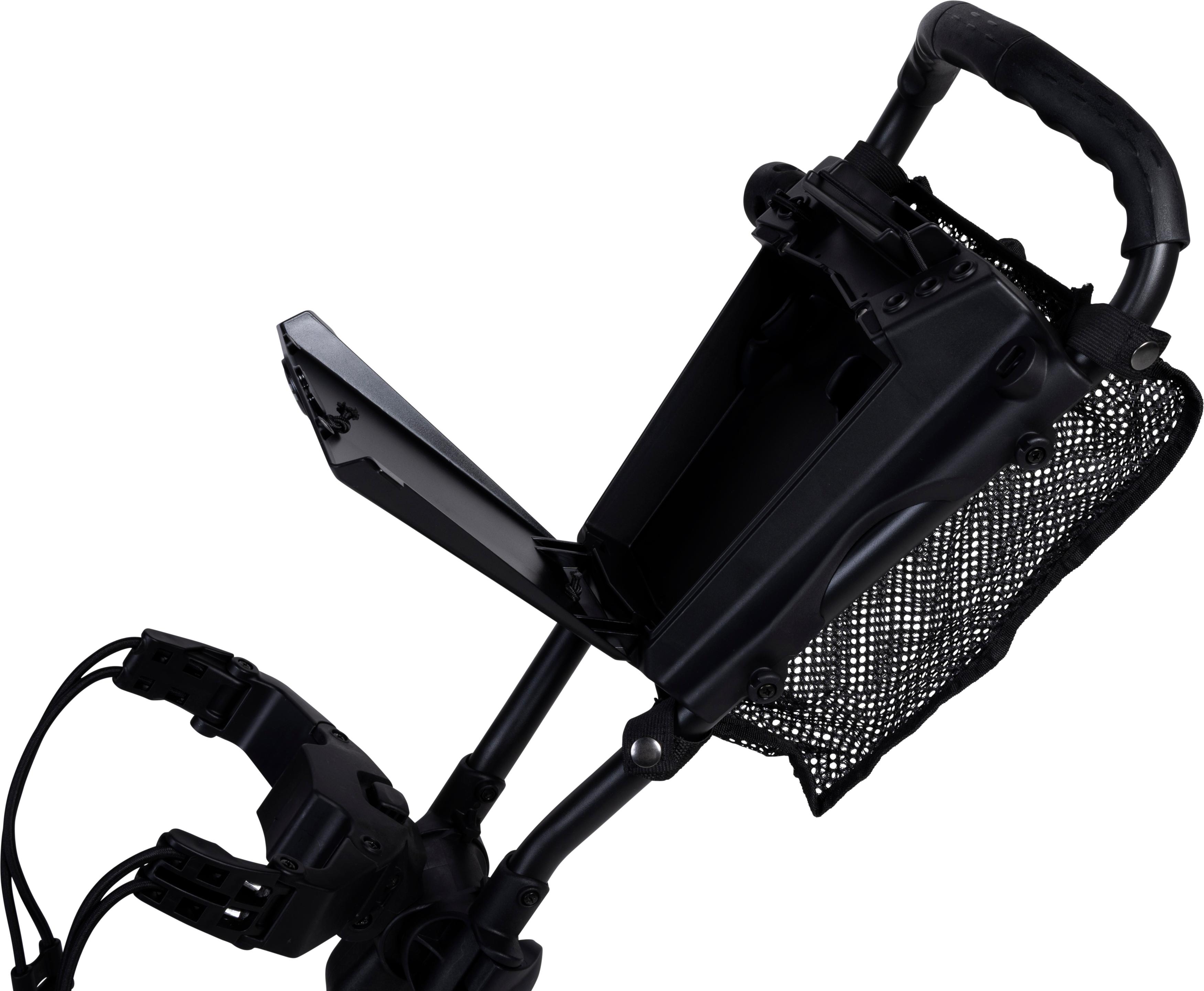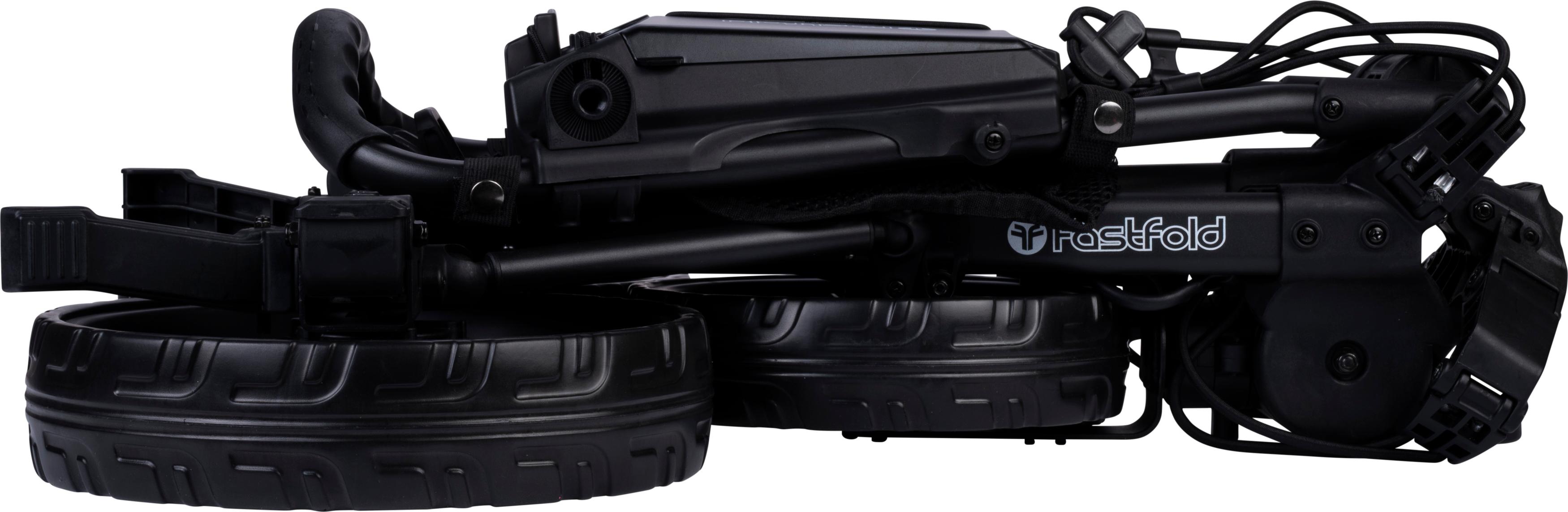 The Fastfold Compact+ Trolley is a high-end, patented 3 wheel design that folds completely flat to just 700 x 560 x 150 mm, making it easy to store—even two trolleys fit in a car trunk! It features brakes on both side wheels, a foldable front wheel, and a standbag-compatible bracket. The big scorecard holder, cup holder, and accessory bases add convenience, while the adjustable handle height and robust frame ensure smooth performance. A compact, premium choice for golfers who value space and functionality.