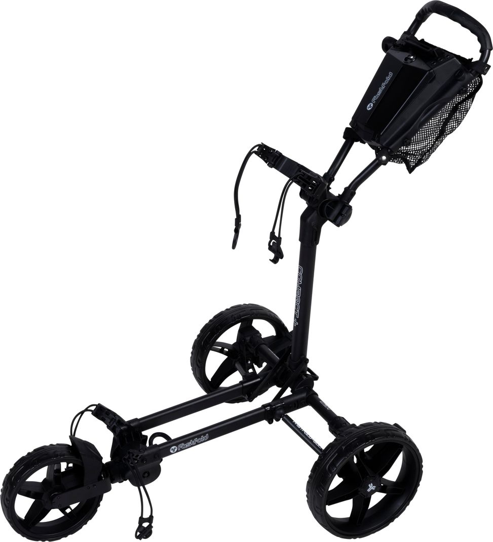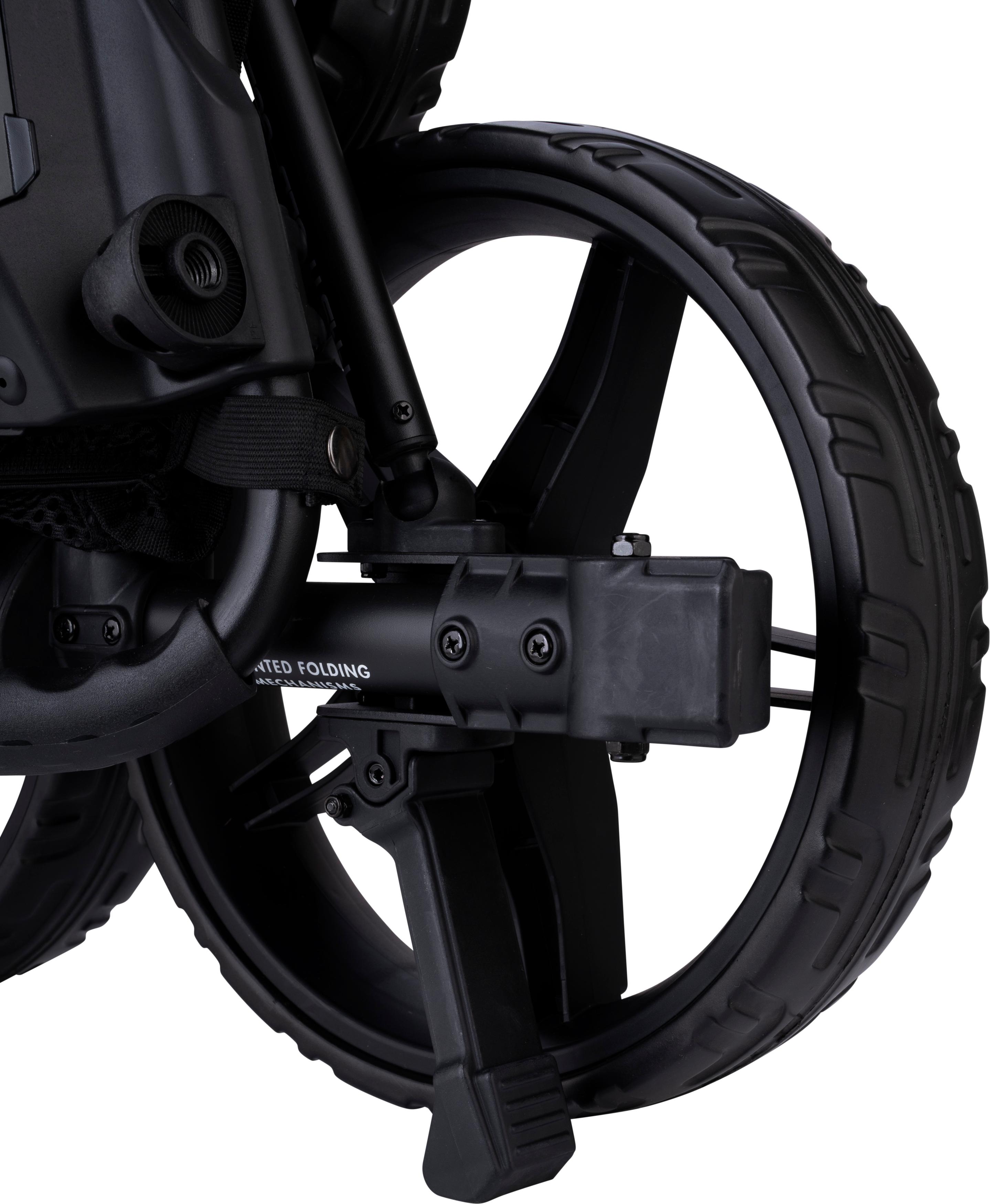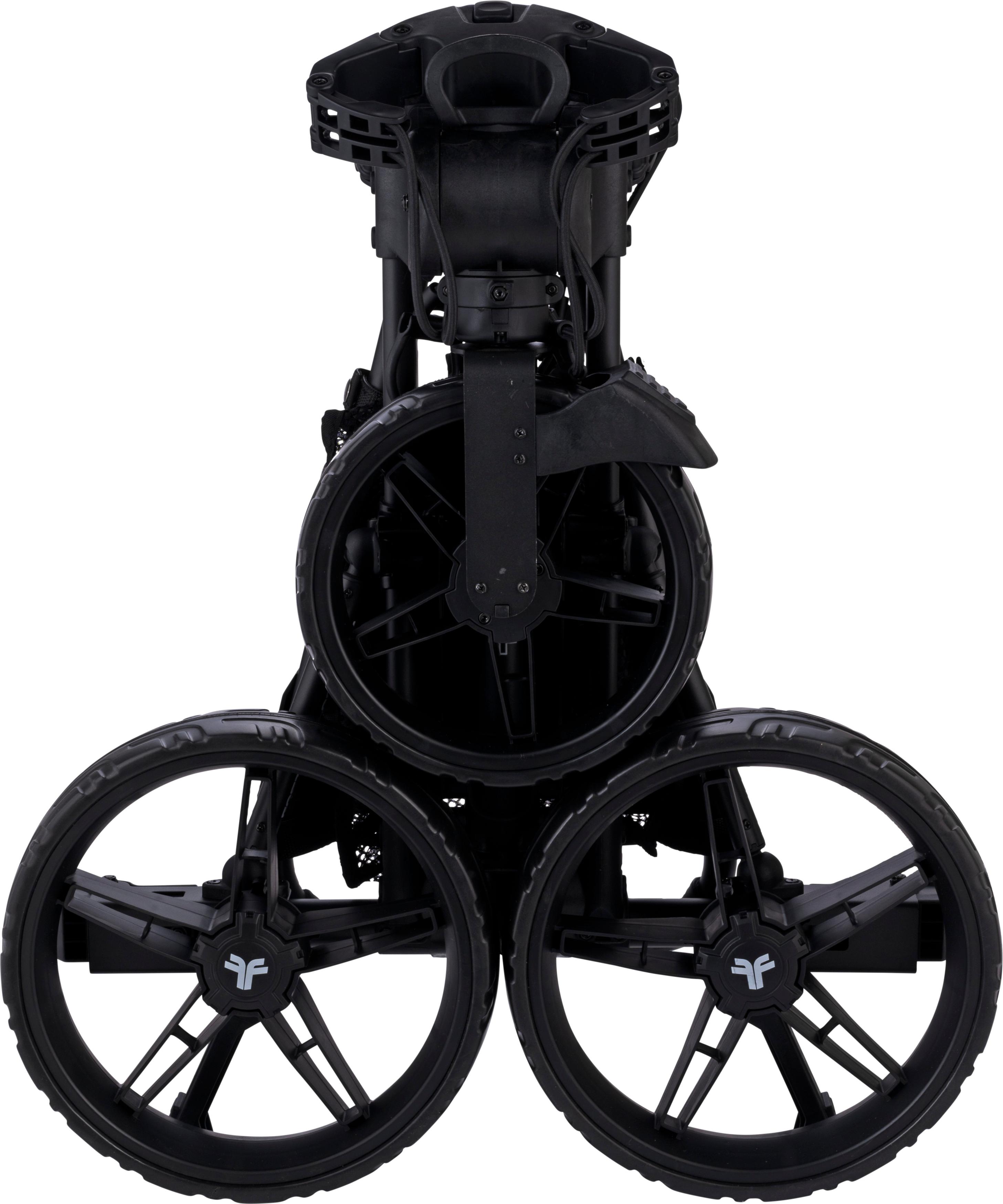 The Fastfold Compact+ Trolley is a high-end, patented 3 wheel design that folds completely flat to just 700 x 560 x 150 mm, making it easy to store—even two trolleys fit in a car trunk! It features brakes on both side wheels, a foldable front wheel, and a standbag-compatible bracket. The big scorecard holder, cup holder, and accessory bases add convenience, while the adjustable handle height and robust frame ensure smooth performance. A compact, premium choice for golfers who value space and functionality.