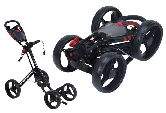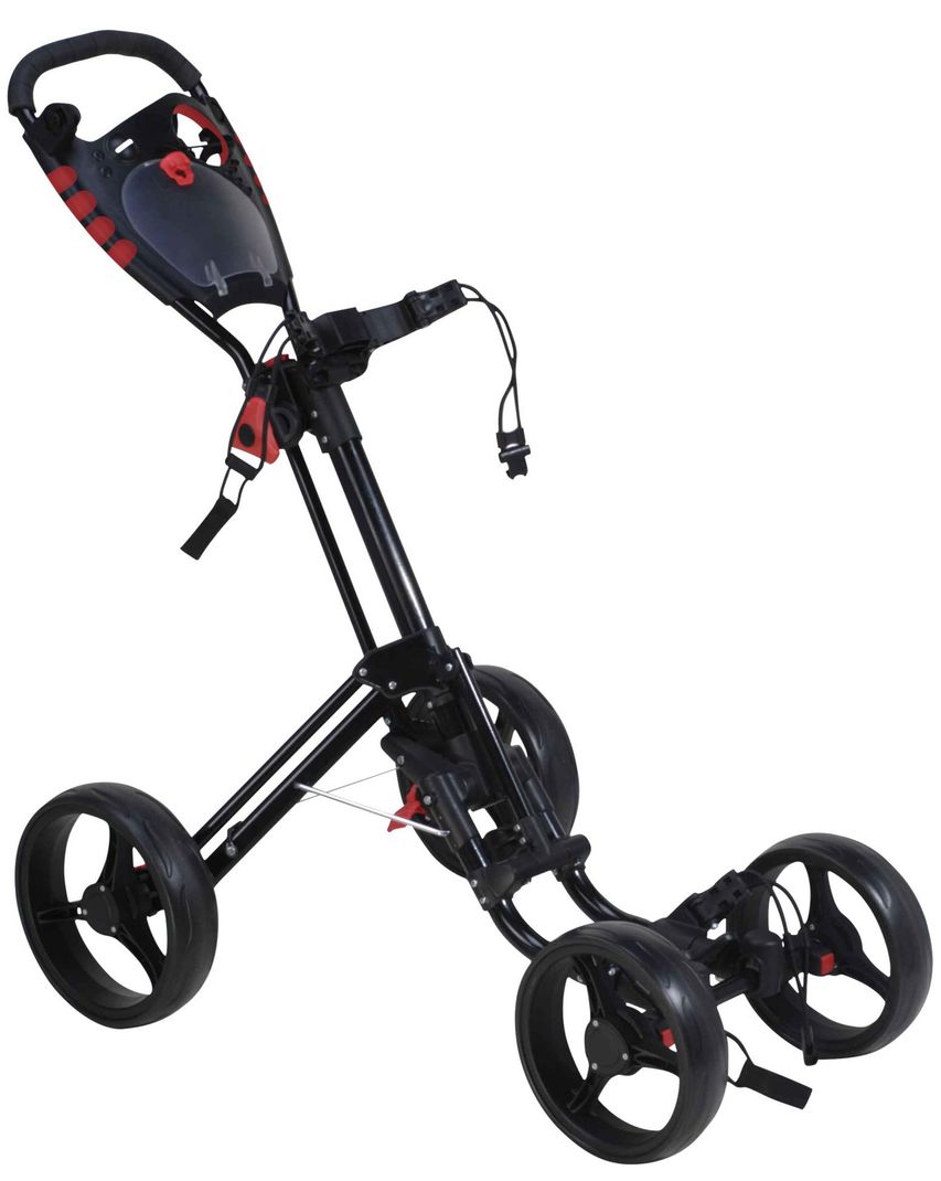 The Fastfold Quad Compact is a space-saving 4-wheel golf trolley designed for maximum stability and ease of use. Key features include: