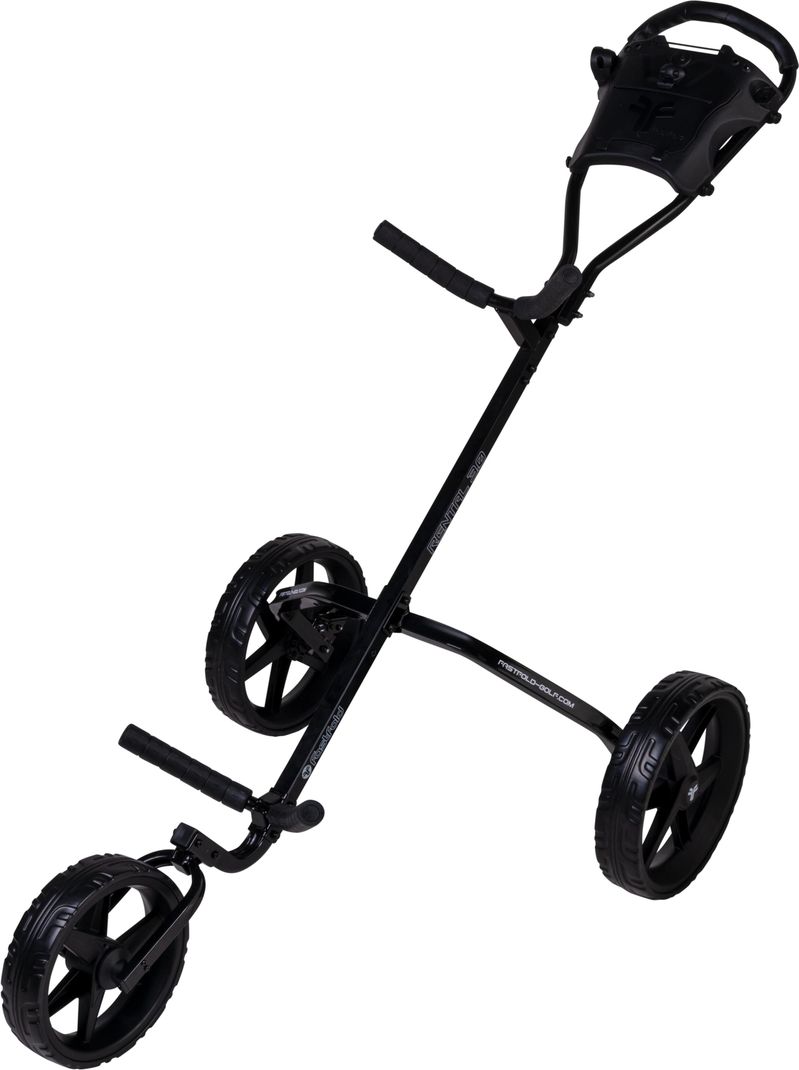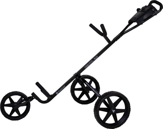 3 wheel trolley 2.0 – Enhanced with a big scorecard holder, phone holder, ball marker, umbrella holder base, footbrake, and 12” rear wheels (5994 gr).