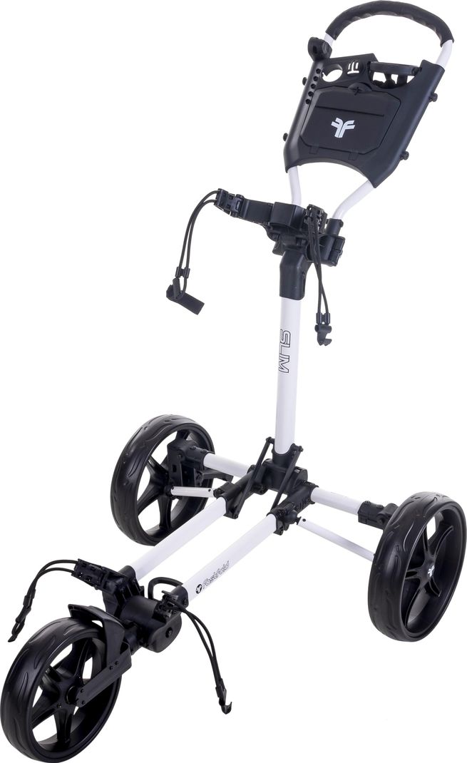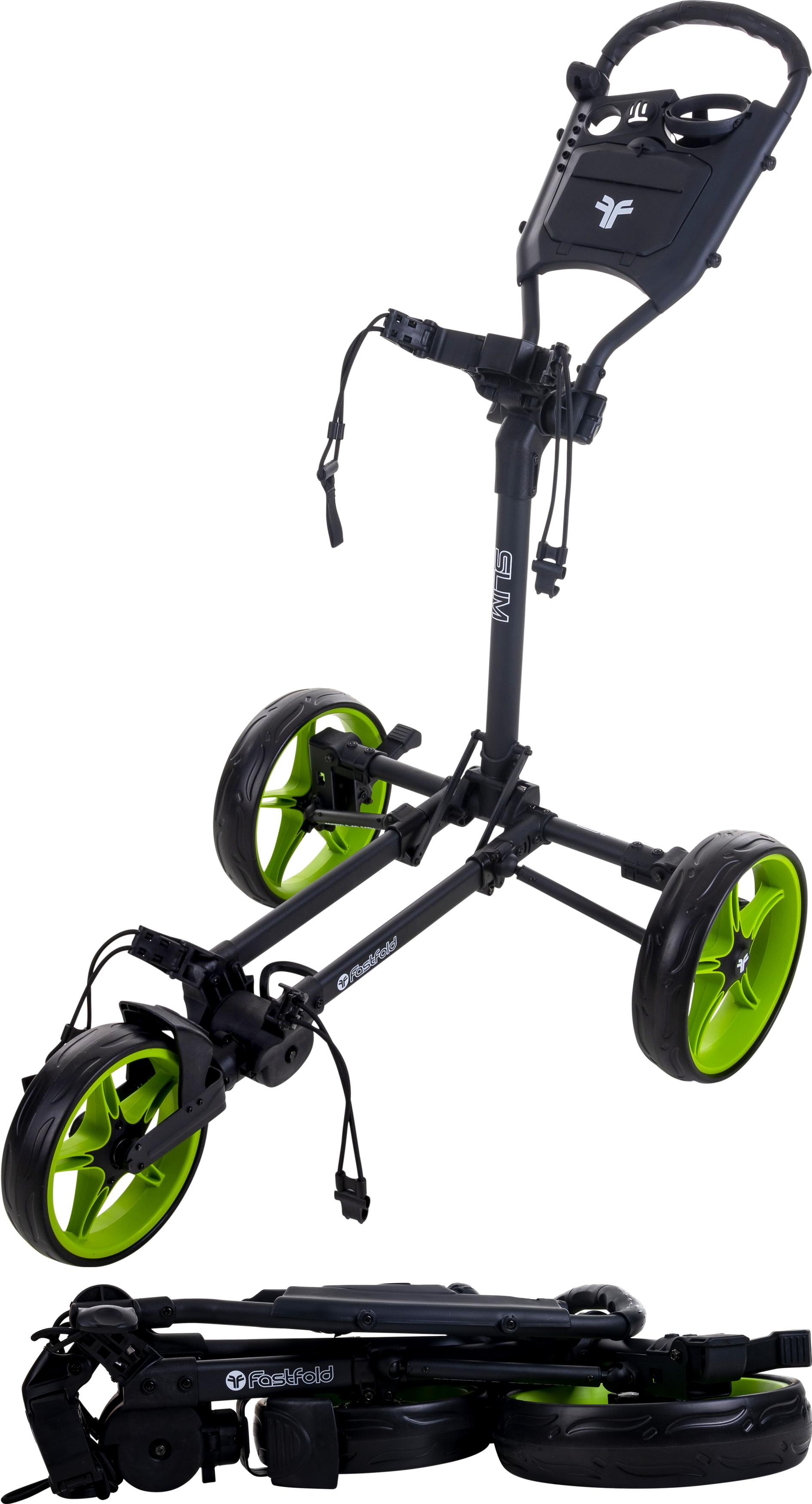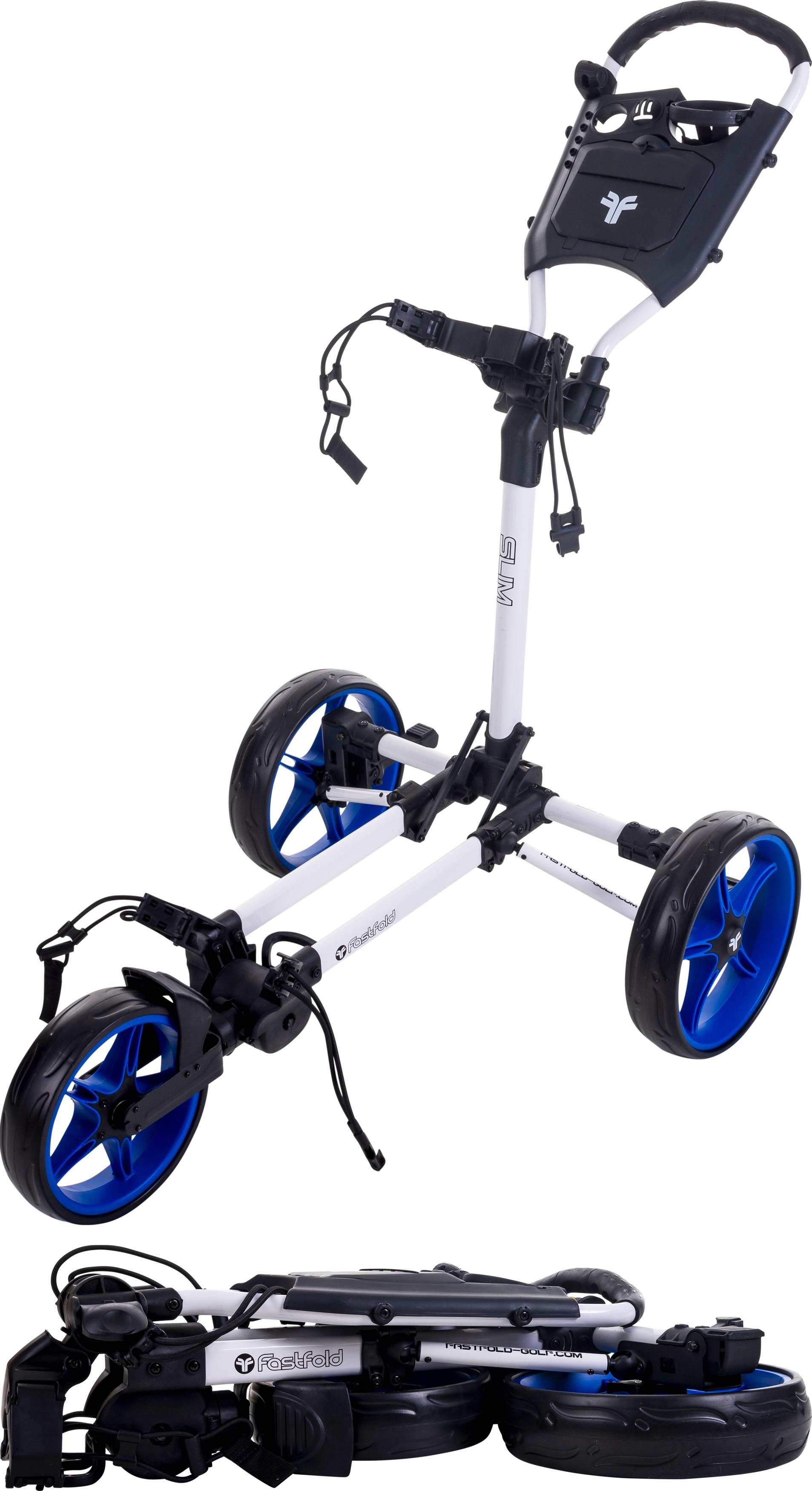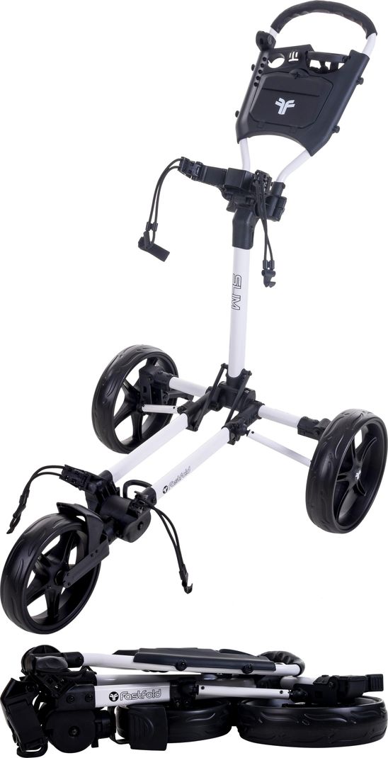 The Fastfold Slim Trolley is a high-end, patented 3 wheel design that folds completely flat to just 700 x 600 x 220 mm, making it easy to store—even two trolleys fit in a car trunk! It features brakes on both side wheels, a fold-able front wheel, and a stand bag-compatible bracket. The big scorecard holder, cup holder, and accessory bases add convenience, while the adjustable handle height and robust frame ensure smooth performance. A compact, premium choice for golfers who value space and functionality.