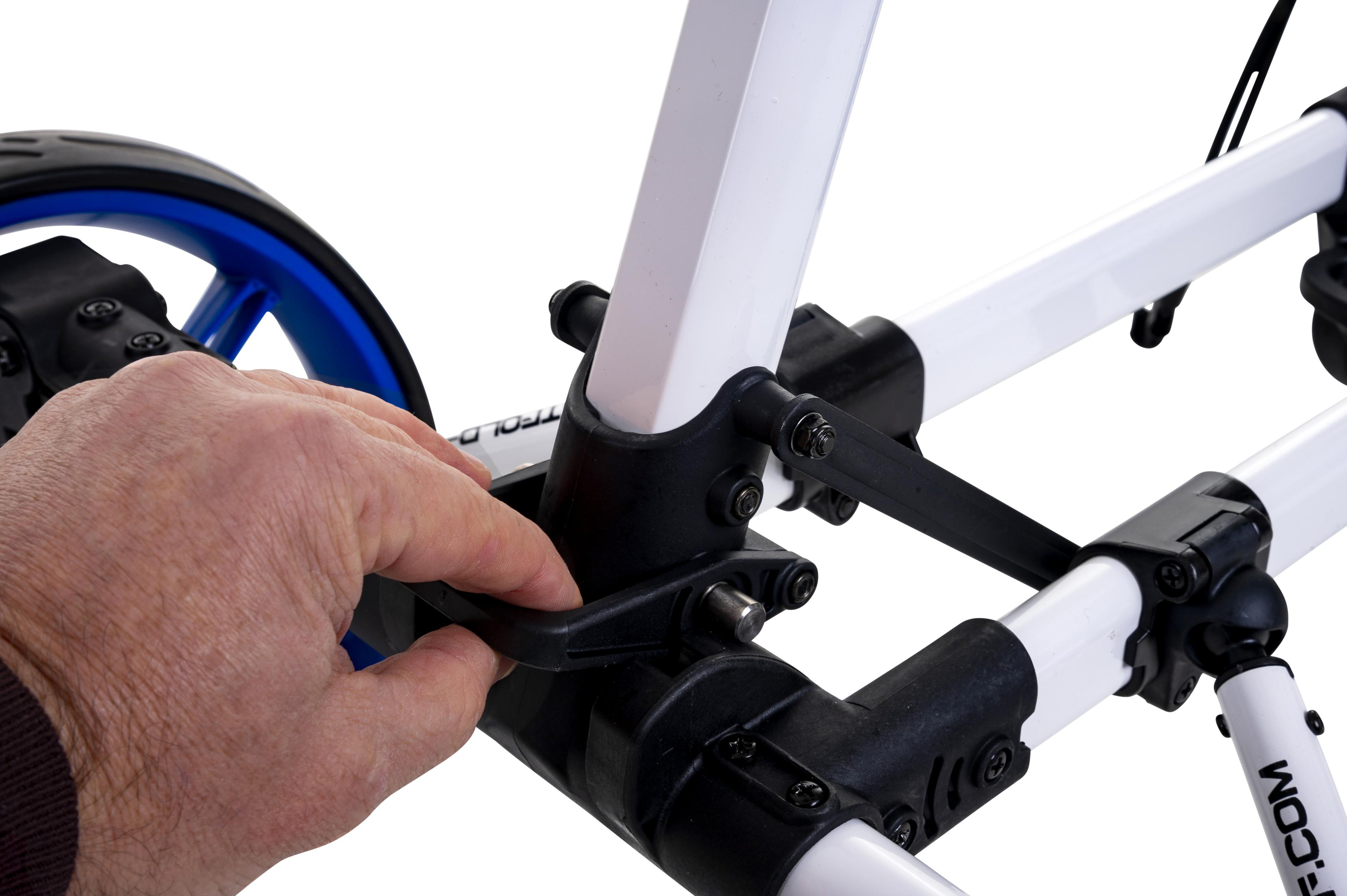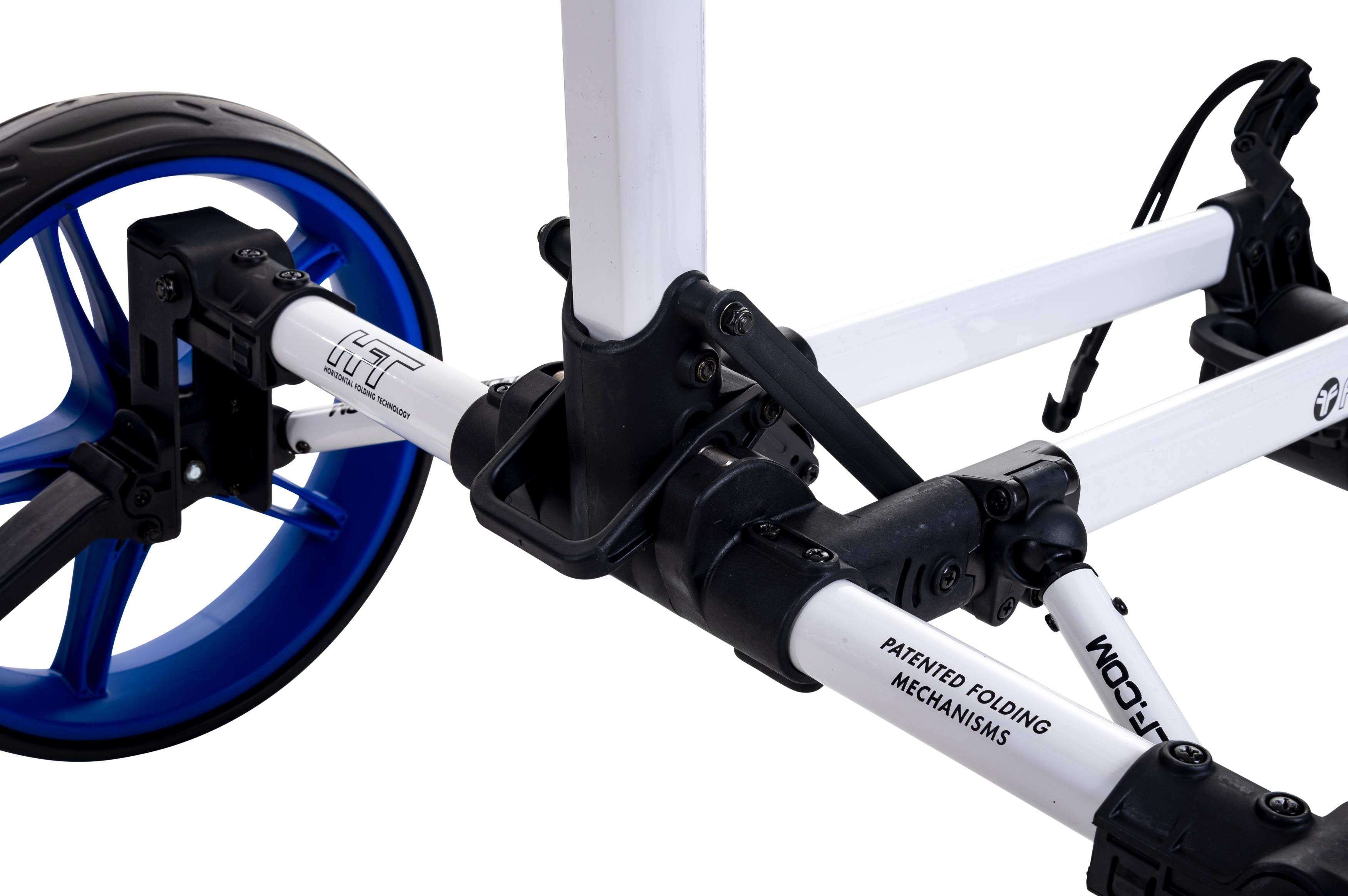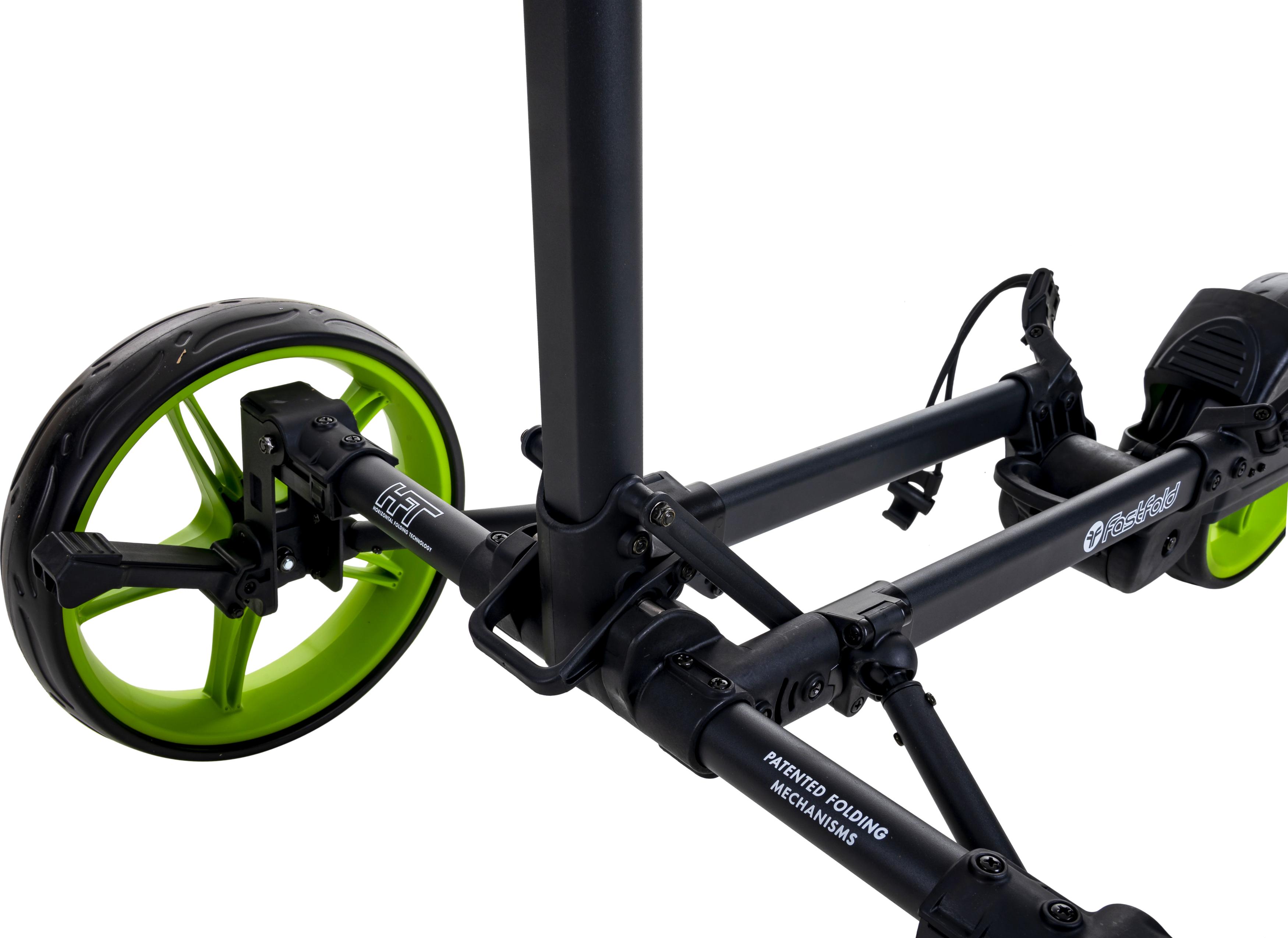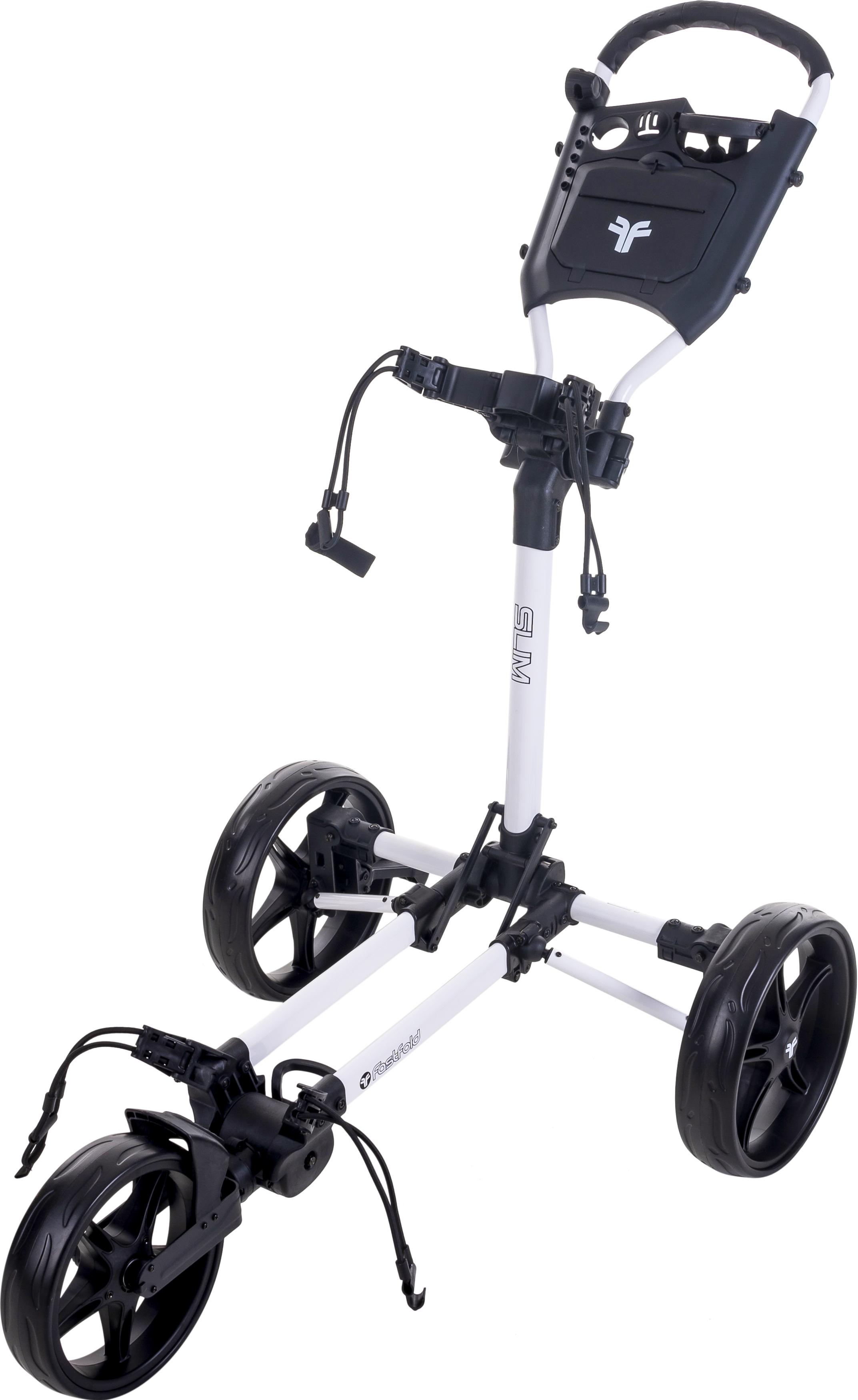 The Fastfold Slim Trolley is a high-end, patented 3 wheel design that folds completely flat to just 700 x 600 x 220 mm, making it easy to store—even two trolleys fit in a car trunk! It features brakes on both side wheels, a fold-able front wheel, and a stand bag-compatible bracket. The big scorecard holder, cup holder, and accessory bases add convenience, while the adjustable handle height and robust frame ensure smooth performance. A compact, premium choice for golfers who value space and functionality.