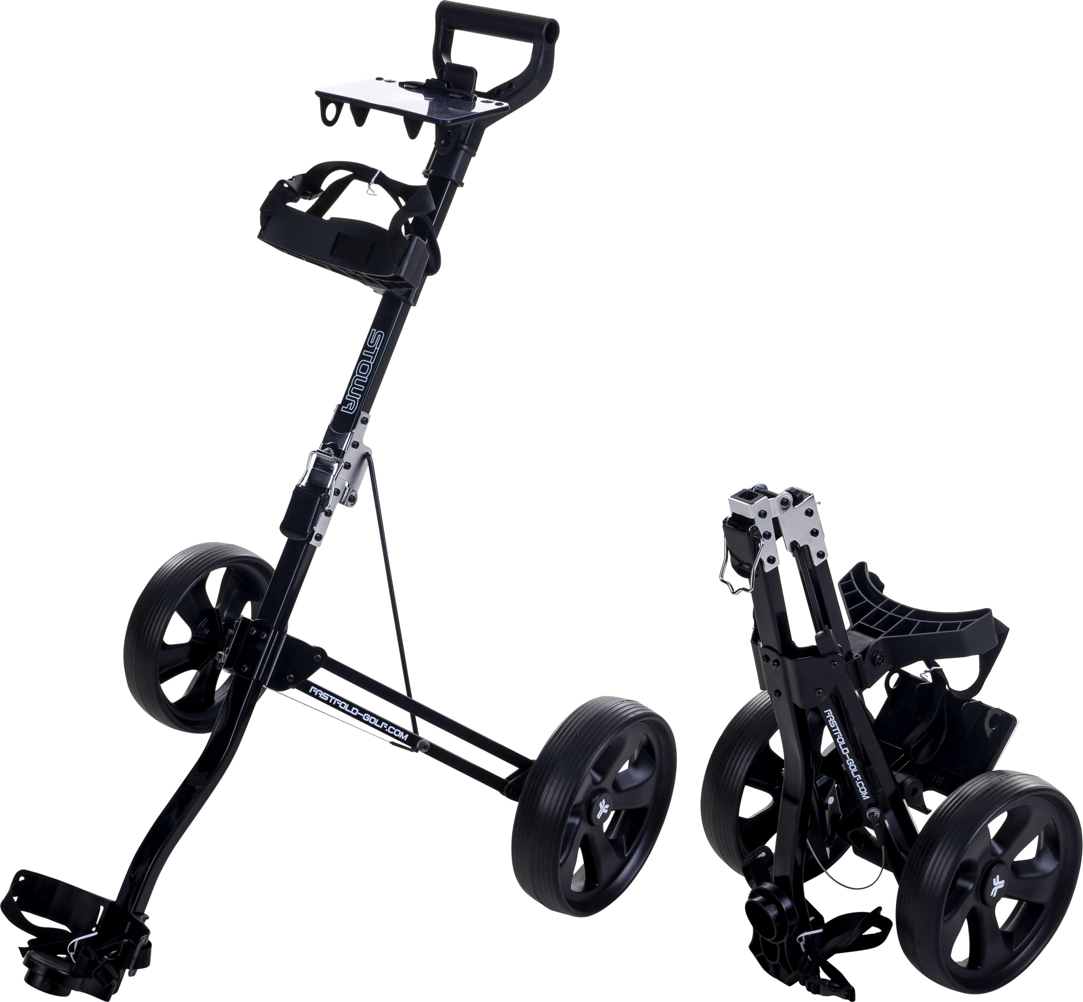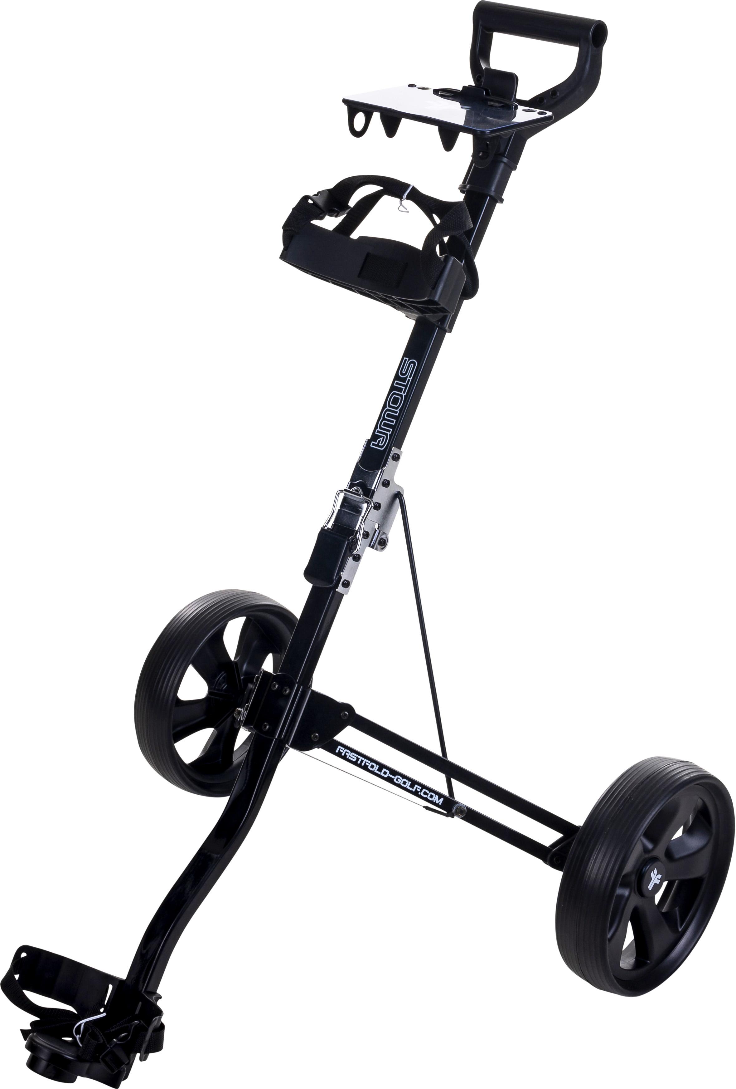 The Fastfold 2 wheel Trolley Stowa offers a more refined look while keeping things simple and functional. With an easy fold system and a compact folded size (605 x 350 x 350 mm), it’s easy to store and transport. Featuring adjustable cart straps, a scorecard holder, ball holder, and tee holders, it provides convenience on the course. Weighing just 3.1 kg with 9.5” rear wheels, it’s a stylish yet practical choice for golfers who want a bit more elegance.
