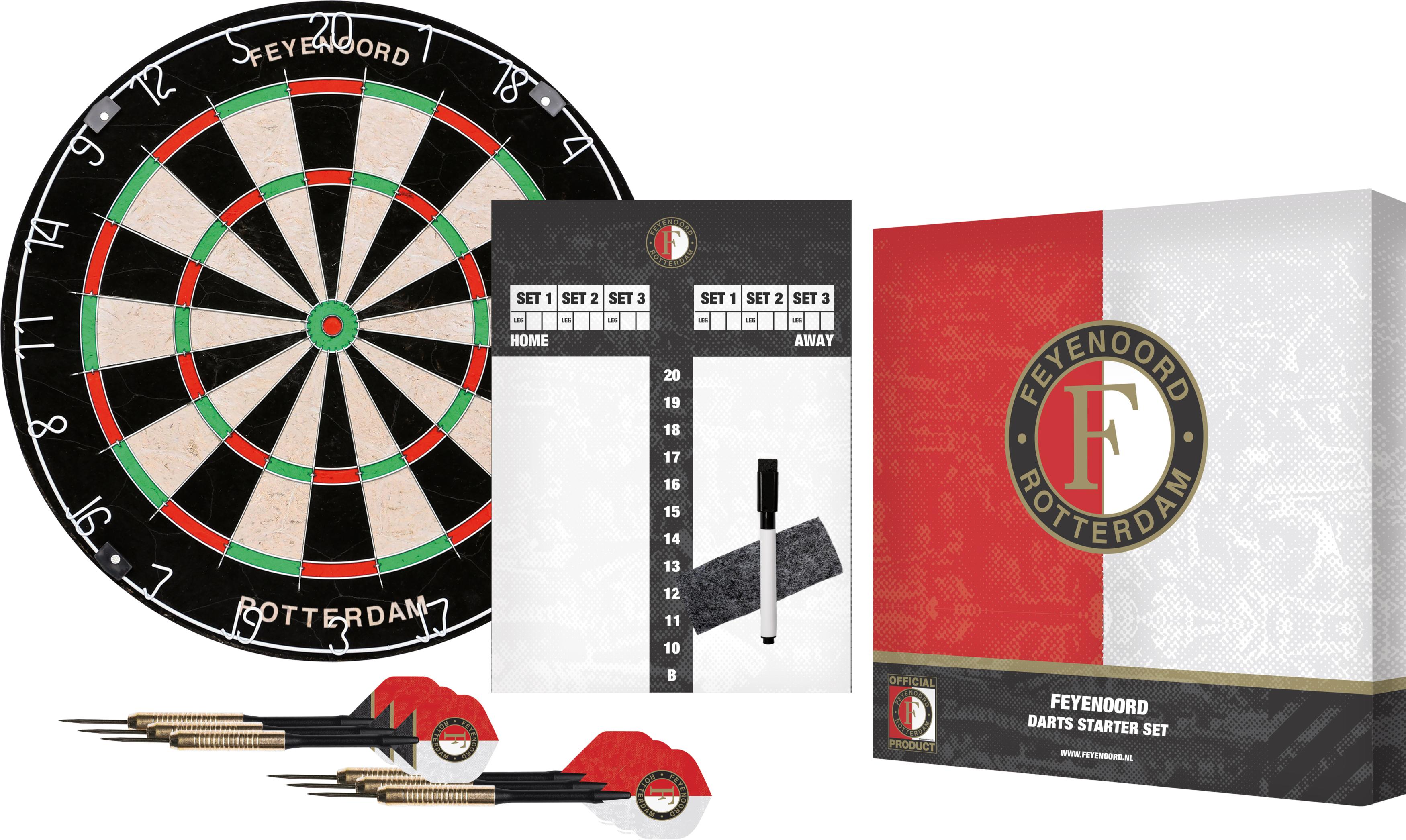 The Feyenoord starter set including dartboard includes everything needed for a complete dart-playing experience: