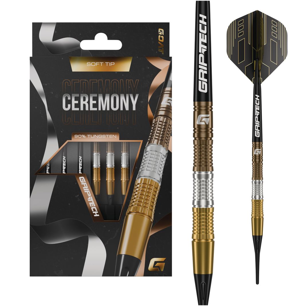 Celebrate darting excellence with the Goat ceremony darts soft tip 90% tungsten. Inspired by the colors of the Olympic medals, these darts feature a stunning...