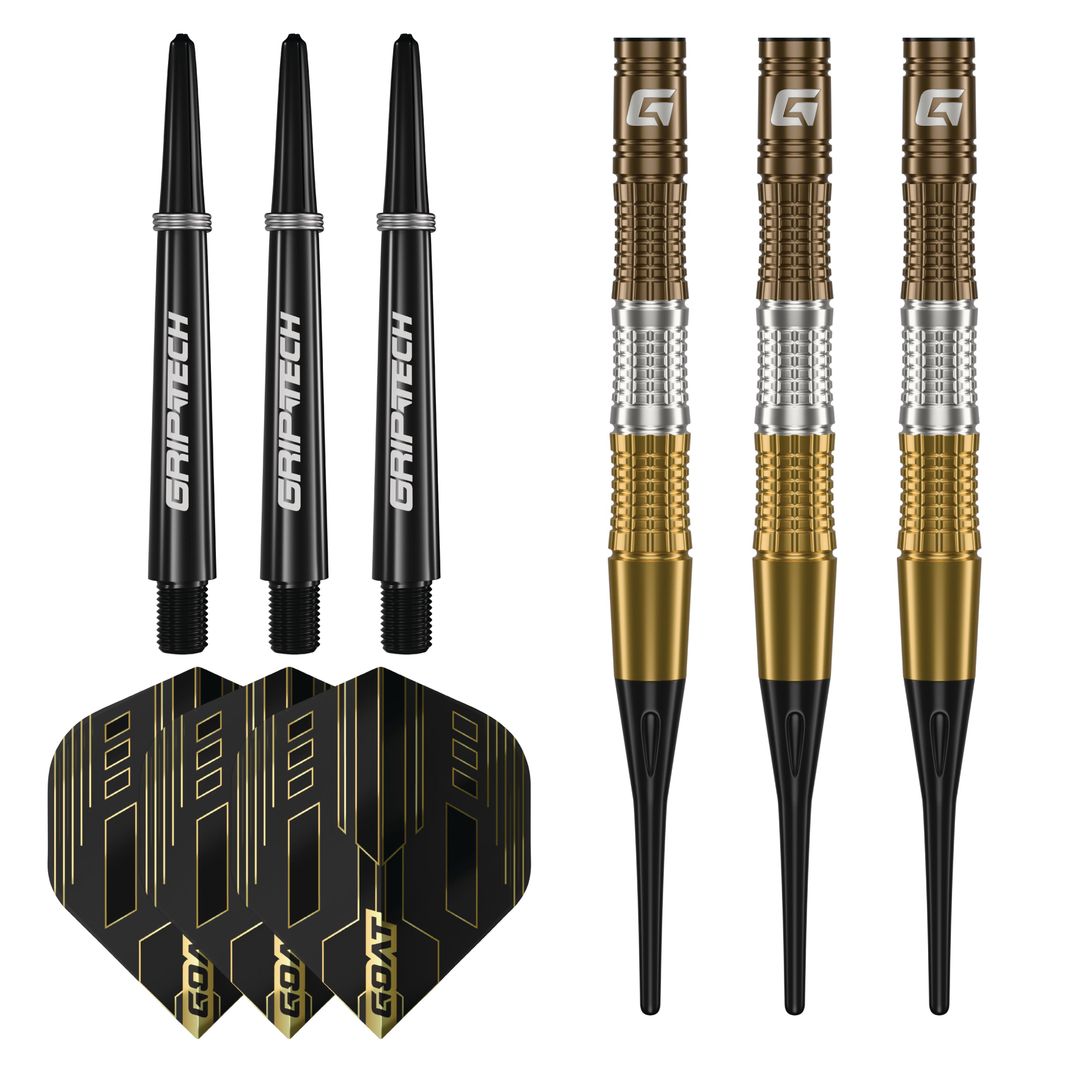 Celebrate darting excellence with the Goat ceremony darts soft tip 90% tungsten. Inspired by the colors of the Olympic medals, these darts feature a stunning gold and bronze pvd coating with a re-cut silver center, symbolizing victory at every level. With three tailored grip sections, they offer unmatched precision and control, making them the ideal choice for players who strive for greatness.