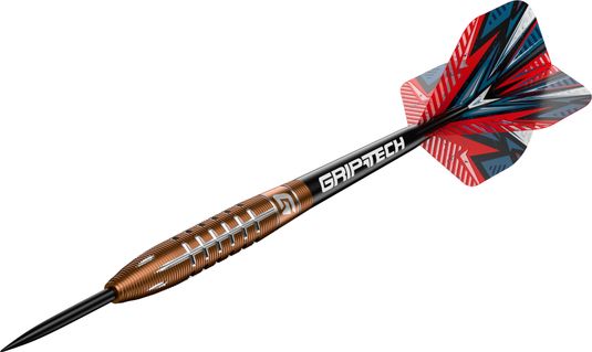 Designed for champions, the Goat quarterback darts steel tip 95% Tungsten V2 replicates the feel of football leather with micro-grip textures and milled laces. The bronze pvd-coated barrels combine style and performance, offering enhanced control for every throw.