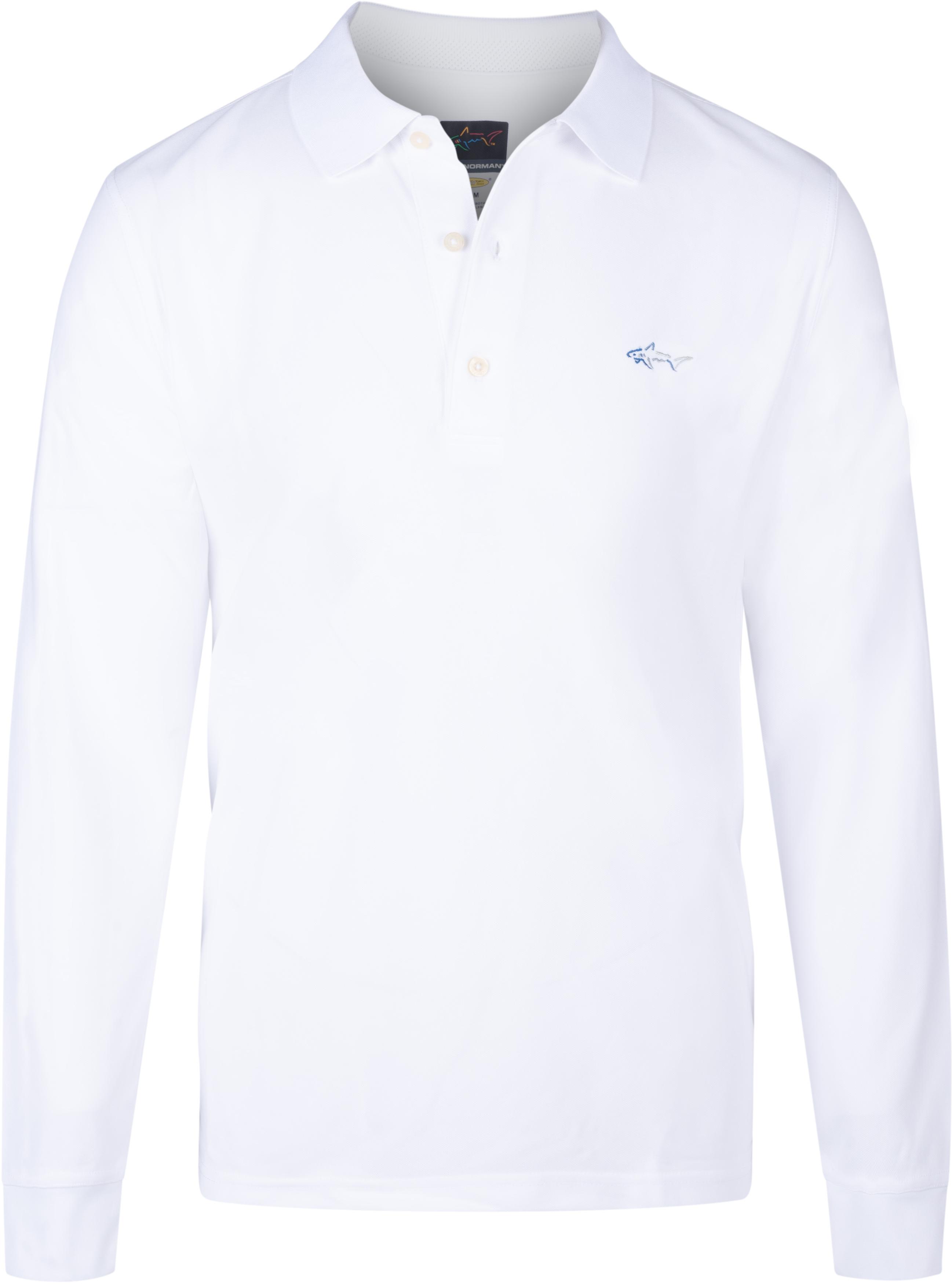 Greg Norman Men's Performance Pique Long Sleeve Polo White