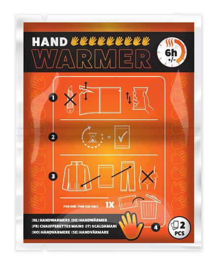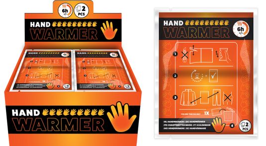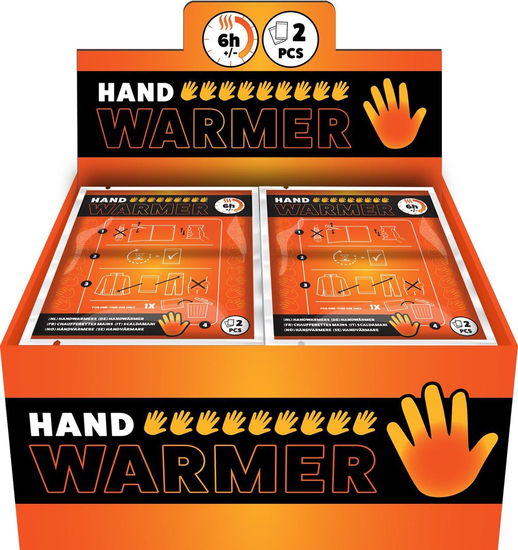 Hand heat packs 40 pieces in display. Sealed per 2 pieces.