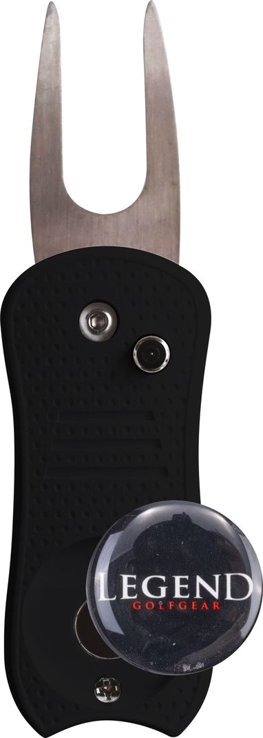 Legend pitchfork including ball marker in black and white.