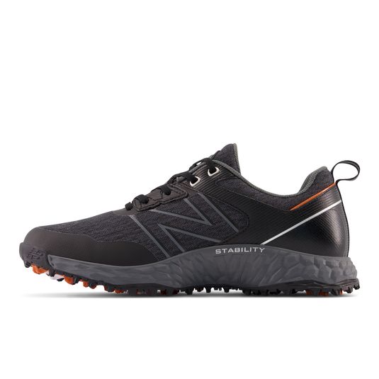 The New Balance fresh foam contend is engineered for both style and functionality. This shoe features a waterproof microfiber leather and performance mesh upper, offering durability and breathability in all conditions. The smart rubber spikeless outsole incorporates pressure-mapping colors to highlight key performance zones, enhancing grip and stability.