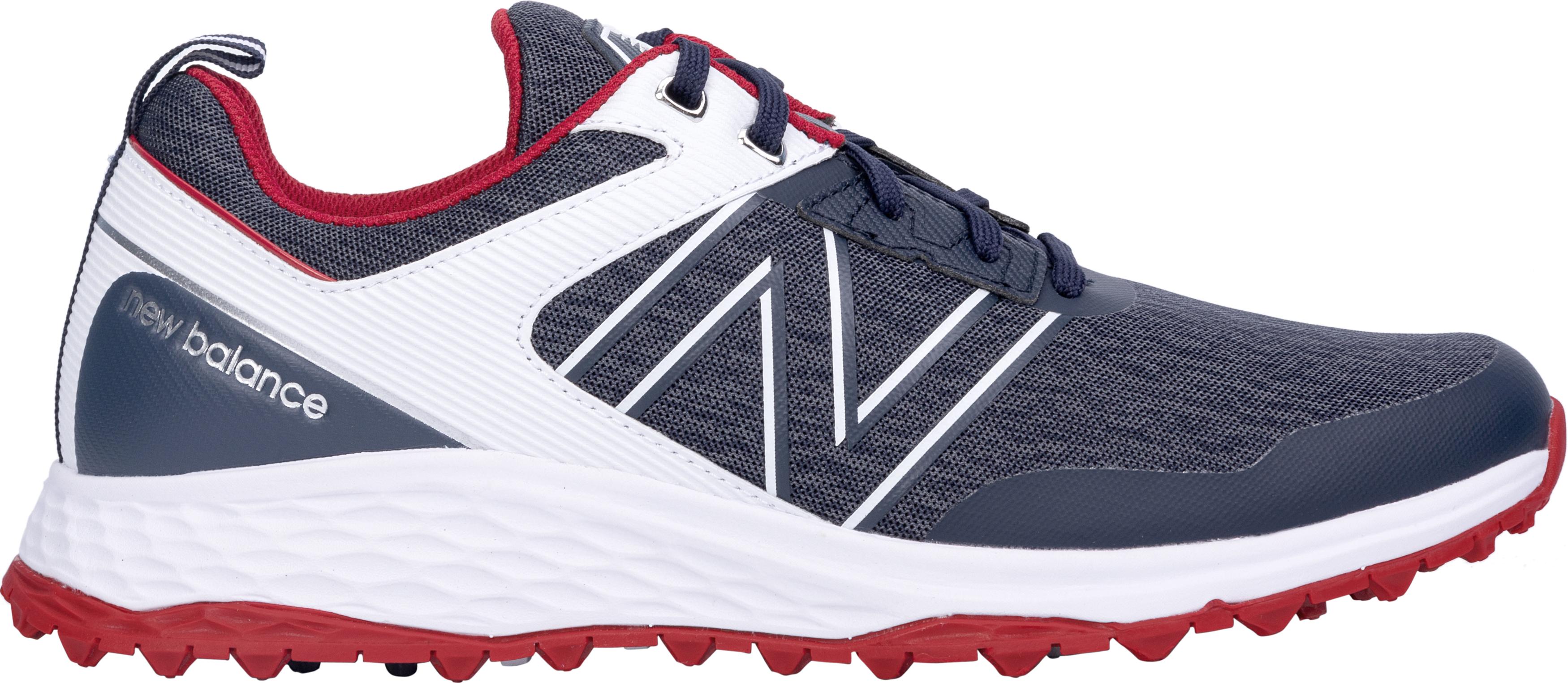 The New Balance fresh foam contend is engineered for both style and functionality. This shoe features a waterproof microfiber leather and performance mesh upper, offering durability and breathability in all conditions. The smart rubber spikeless outsole incorporates pressure-mapping colors to highlight key performance zones, enhancing grip and stability.