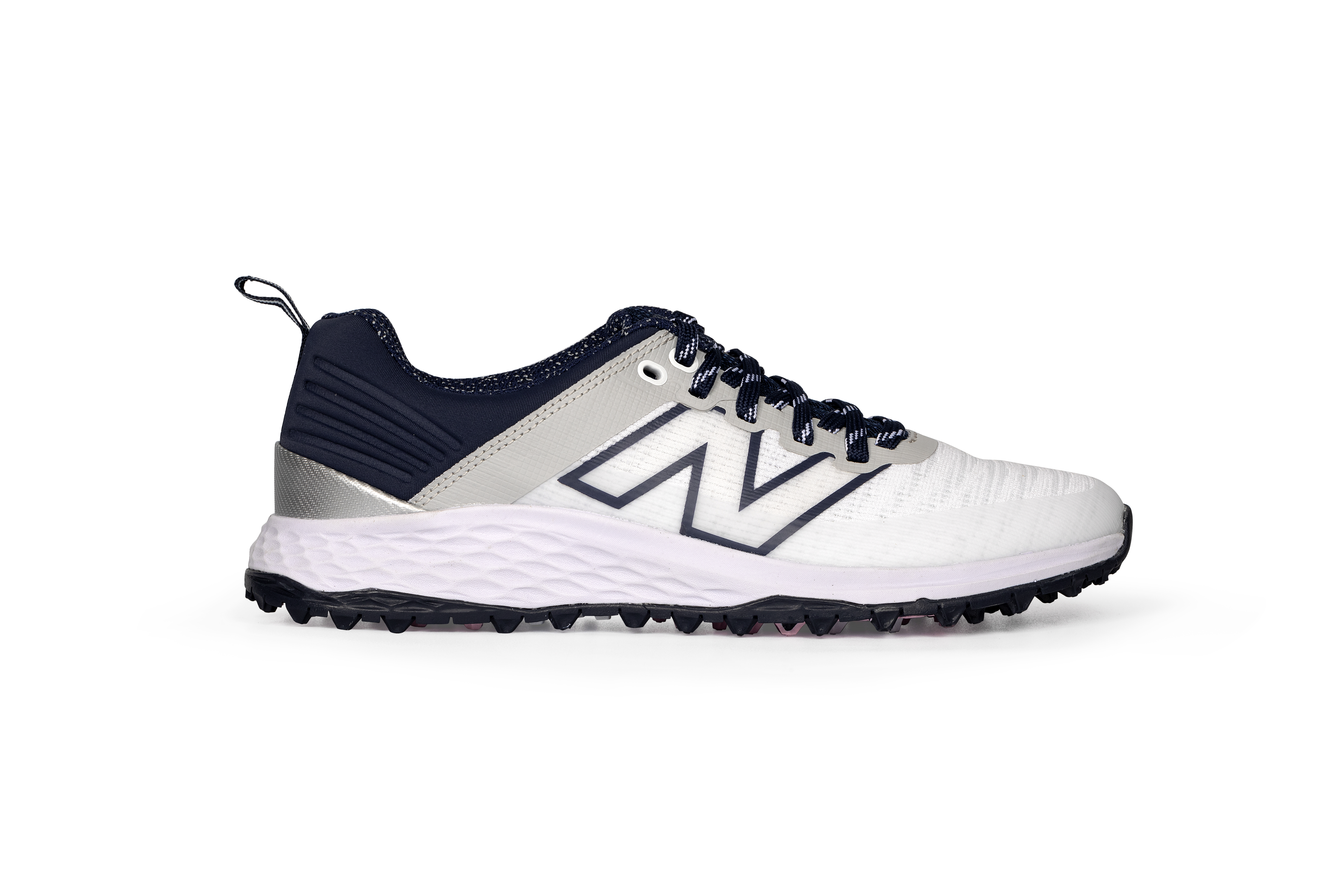 The New Balance fresh foam contend v2 is built for lightweight performance and lasting comfort. This spikeless golf shoe features a waterproof performance mesh upper reinforced with ultralight FantomFit® support—delivering breathability and structure in all conditions.