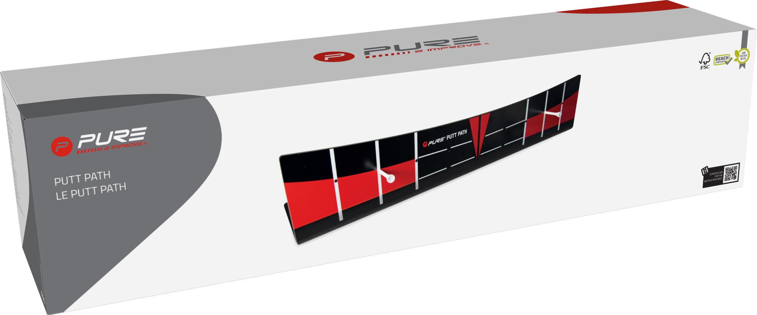 Pure 2Improve Putt Path. Create your ideal path and speed for your putt. Use the different aids to help you create the perfect putt on every course and every condition. Use the slots to create the perfect back and trough motion for your putting stroke by entering tees (not included) in the different slots or use the markings on the board. Also ideal in combination with other Pure 2Improve golf training tools.