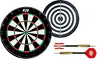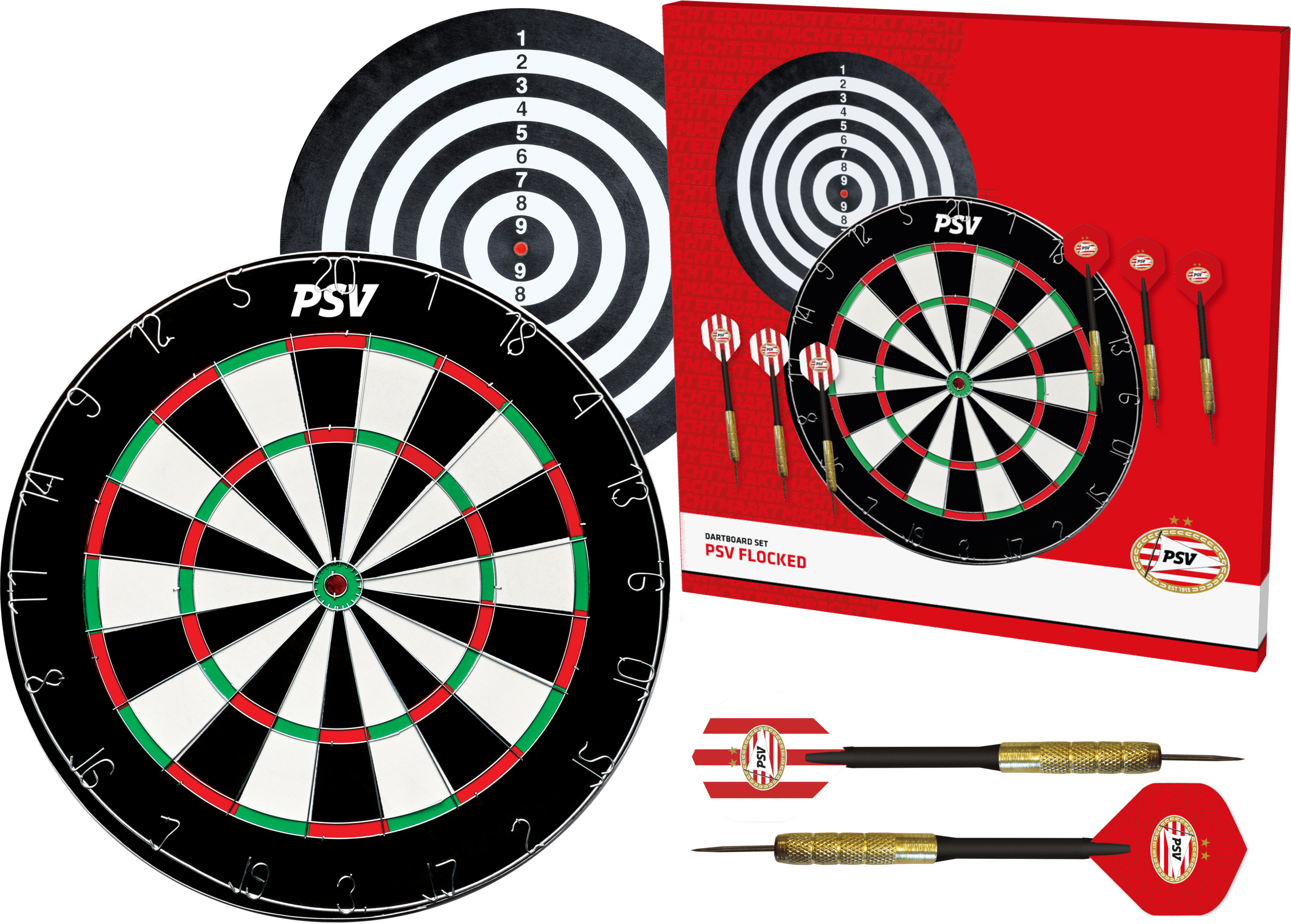 Flocked dartboard set offers a stylish and accessible dart experience.