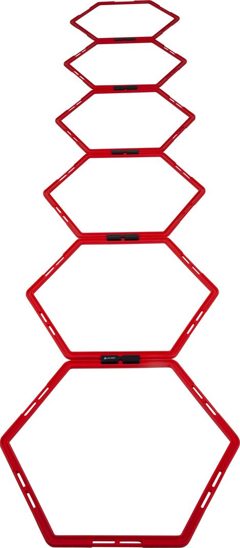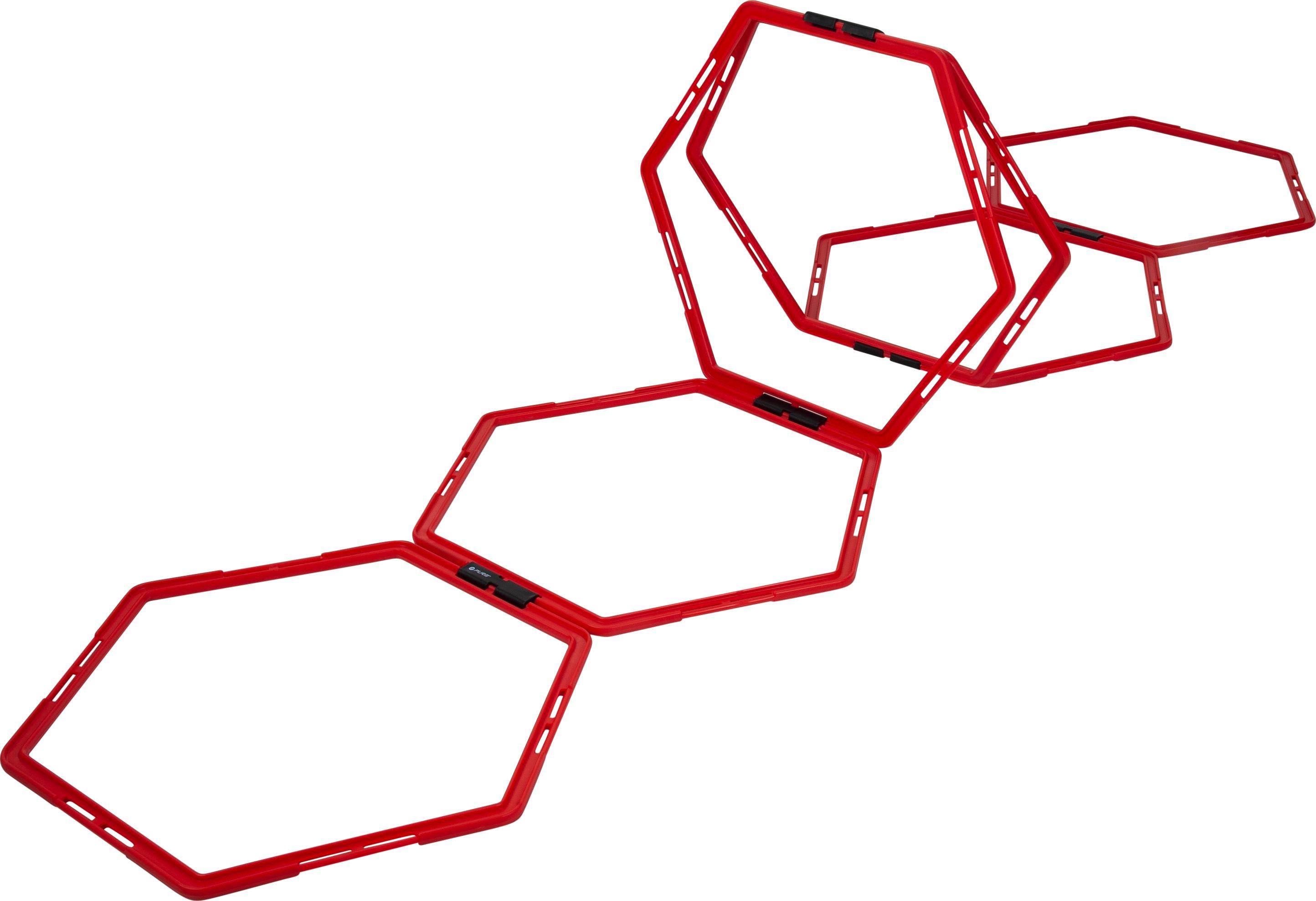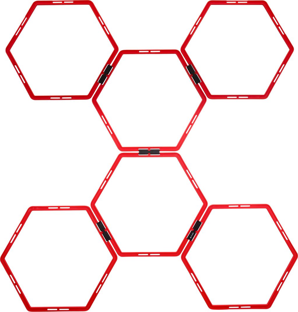 The Hexagon Agility Grid helps to improve fitness, coordination and speed. Many variations are possible through putting the rings in alternating patterns. Durable linking clips allow endless layout configurations that will provide the definitive test of agility, power, coordination and speed. Set of 6 pieces.