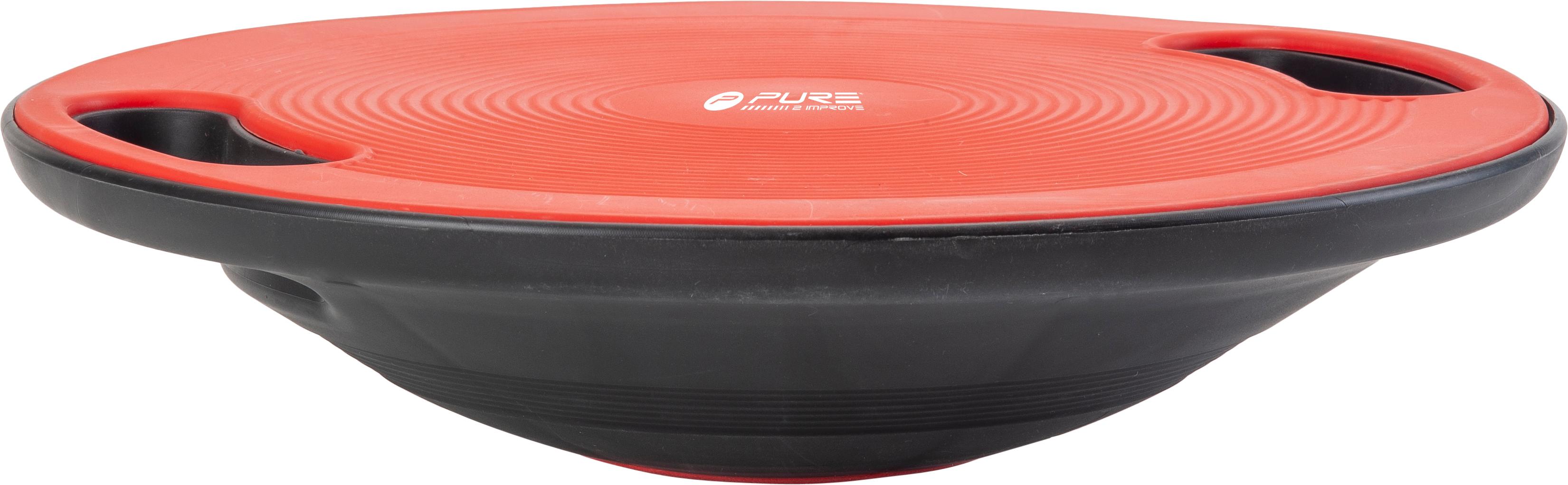 Balance board with anti-slip pattern. With two hand grips, for ground exercises. This Pure 2Improve balance board is a complete fitness studio of its own. Designed to make balance training fun and affordable. It promises fantastic results: strengthen your lower back, increase balance and coordination, boost your sports performance. Max load 100 kg.