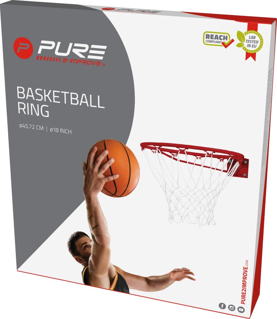 Basketball Ring with net official size (dia 45 cm). Suitable for children and adults who play basketball outside. This basketball ring is very sturdy and has the regulation diameter. This basketball ring can be mounted against a wall or on a board.