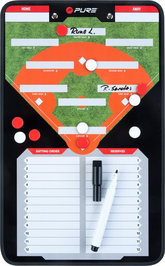 Use this double-sided Pure 2Improve magnetic, dry-erase, coach-board to align your team and track your stats. One side includes a full court/field for diagramming plays, while the other side allows you to set up plays using the white and red round magnets, and allows you to track fouls, timeouts, and match ups. This helps you to communicate better and faster what you want to make clear to your team. You can also write down key-points for everybody to remember. The coach-boards are made of lightweight plastic and include a whiteboard-marker (easy to erase) and magnets.