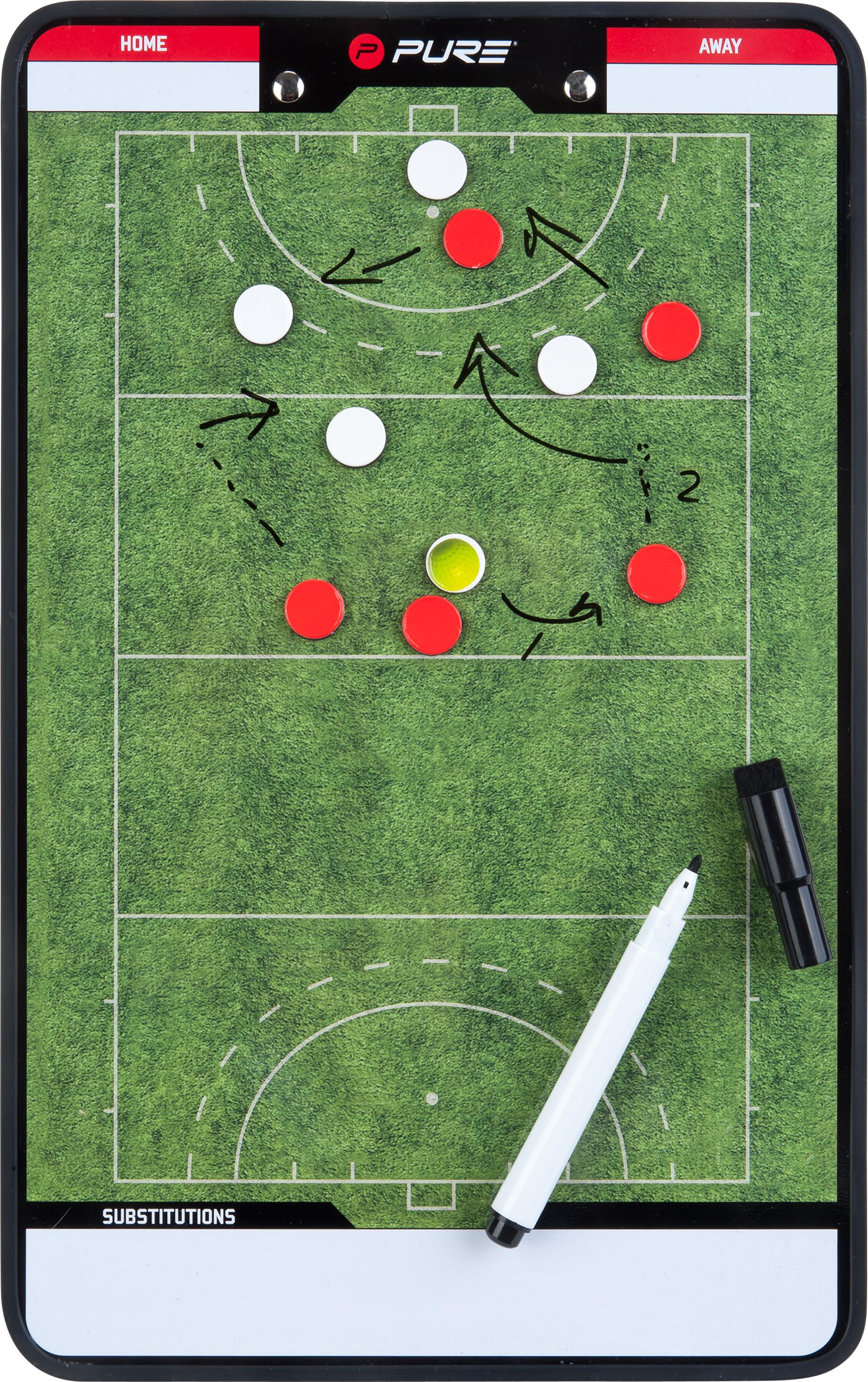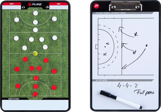 Use this double-sided Pure 2Improve magnetic, dry-erase, coach-board to align your team and track your stats. One side includes a full court/field for diagramming plays, while the other side allows you to set up plays using the white and red round magnets, and allows you to track fouls, timeouts, and match ups. This helps you to communicate better and faster what you want to make clear to your team. You can also write down key-points for everybody to remember. The coach-boards are made of lightweight plastic and include a whiteboard-marker (easy to erase) and magnets.