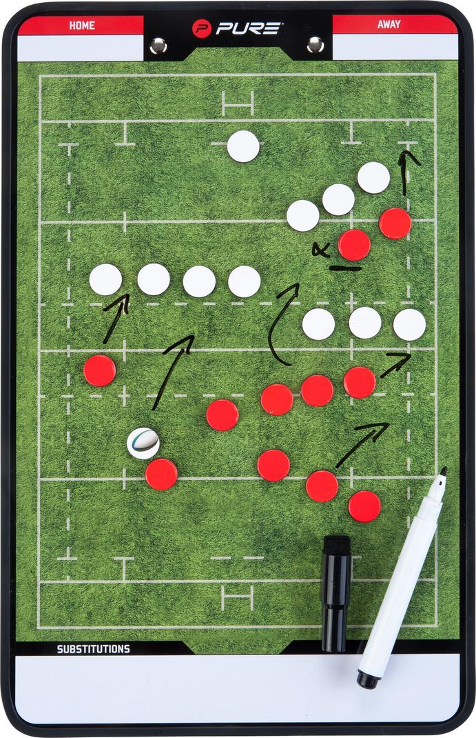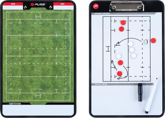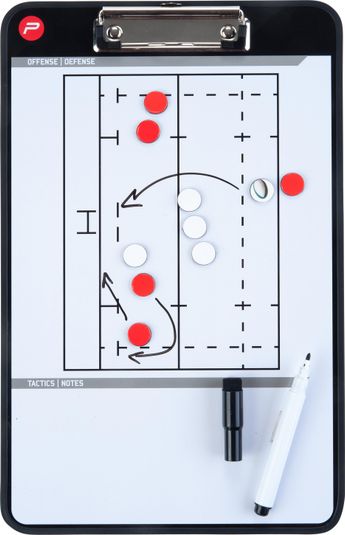Use this double-sided Pure 2Improve magnetic, dry-erase, coach-board to align your team and track your stats. One side includes a full court/field for diagramming plays, while the other side allows you to set up plays using the white and red round magnets, and allows you to track fouls, timeouts, and match ups. This helps you to communicate better and faster what you want to make clear to your team. You can also write down key-points for everybody to remember. The coach-boards are made of lightweight plastic and include a whiteboard-marker (easy to erase) and magnets.