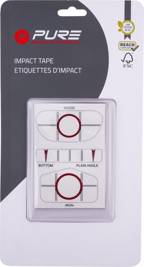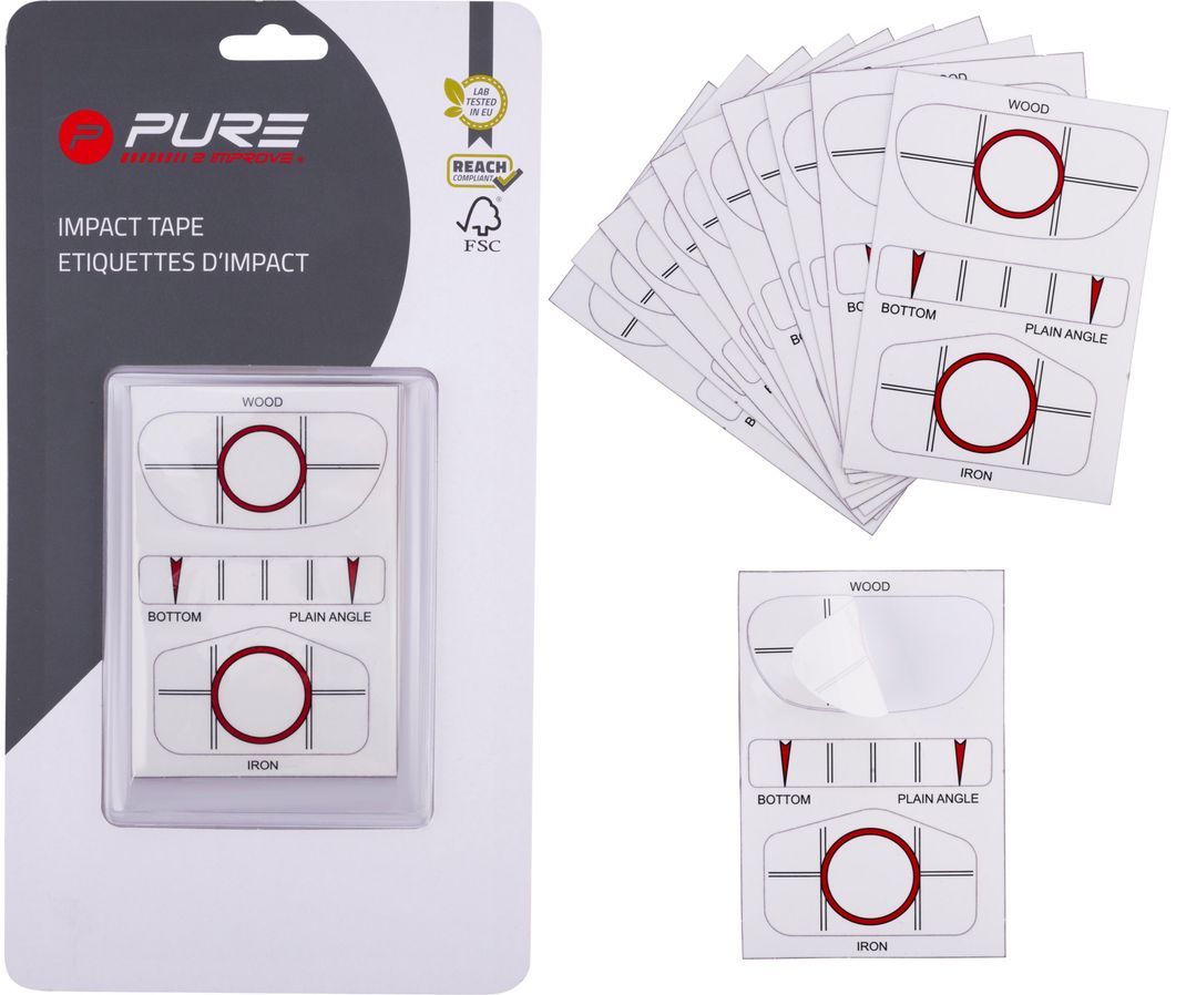 Are you hitting the sweet spot? With the Pure 2Improve Impact Tape you easily check where you've hit the ball. Get your shots more centered with the Impact Tape. This set comes with 10 sheets of 3 stickers for Woods, Irons and Putters.