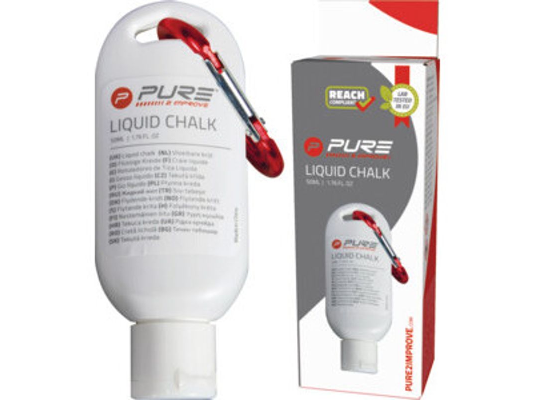 Gym Chalk Liquid, 50 ml, is a fluid that is applied to the hands or feet to improve your grip and also reduce sweating. Liquid Chalk does not transfer to equipment, and unlike traditional chalk powder leave powder stains on clothing and stops chalk being inhaled.