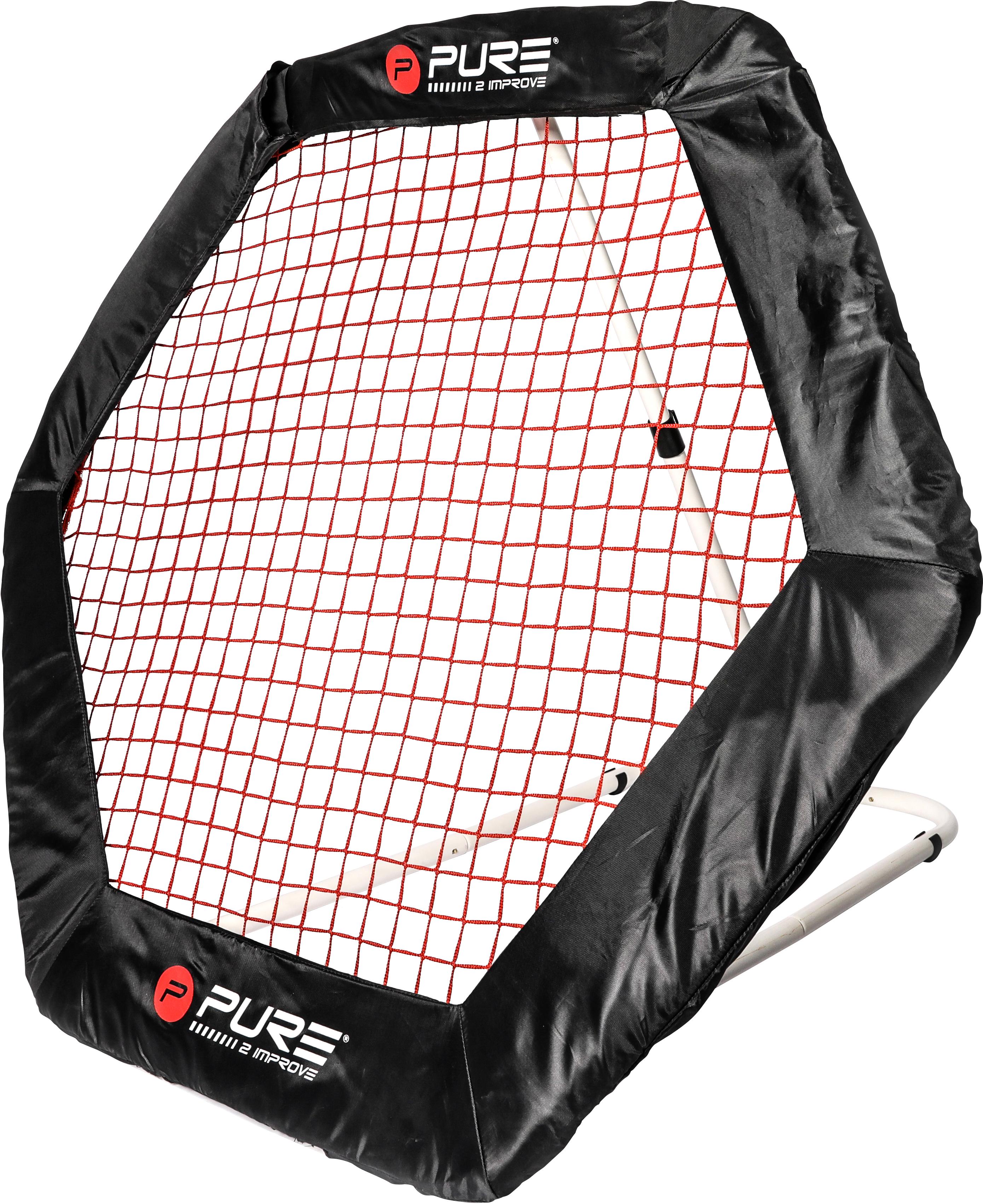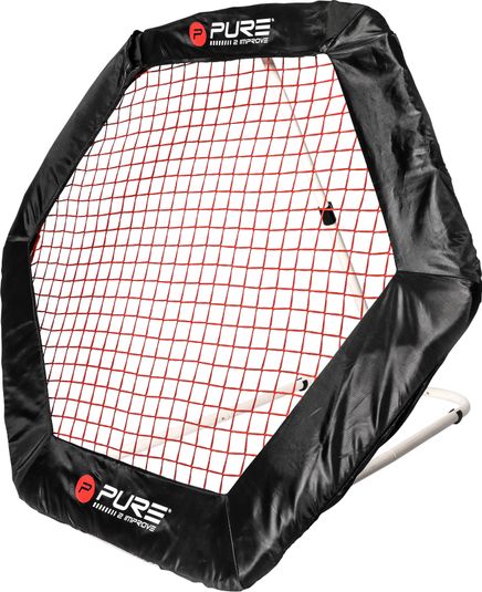 Rebounder Hexagon. Size: 140 x 125 cm. This multisport rebounder is your ideal training partner. Create more Control, Response, Speed, Agility by doing your drills with the rebounder. Use as single player or with a group of players. Improve your first touch, your ball control, your weaker foot, your volley's, your goalkeeper-skills all with the Pure2improve Rebounder.