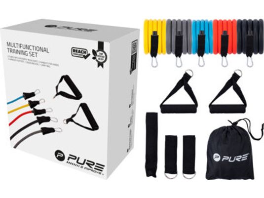 The Multi functional Training Set consists of various sturdy and durable fitness elastics. You can perform numerous exercises with dozens of different resistance levels, by...