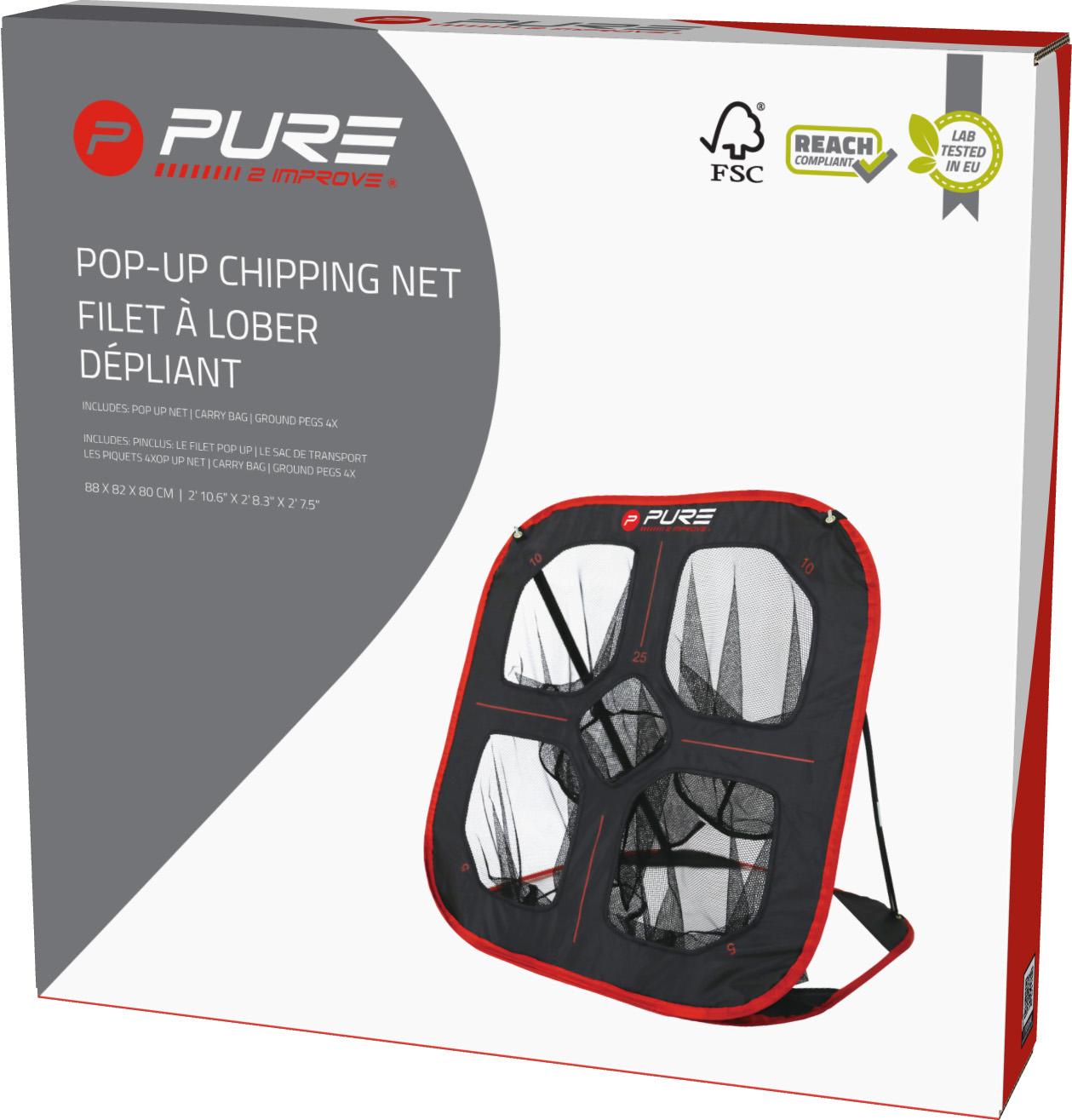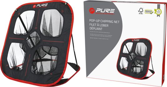 Are you chipping me? Set up your chipping session in seconds. Train your chips to the ultimate level. Together with one of the Pure 2Improve hitting mats (not included), this is the ultimate set to practice anywhere at home, yard, office, playground or your golf course. This set contains the chipping net with a carry bag and ground pegs to hold it in place when necessary. Size: 88x82x80 cm.