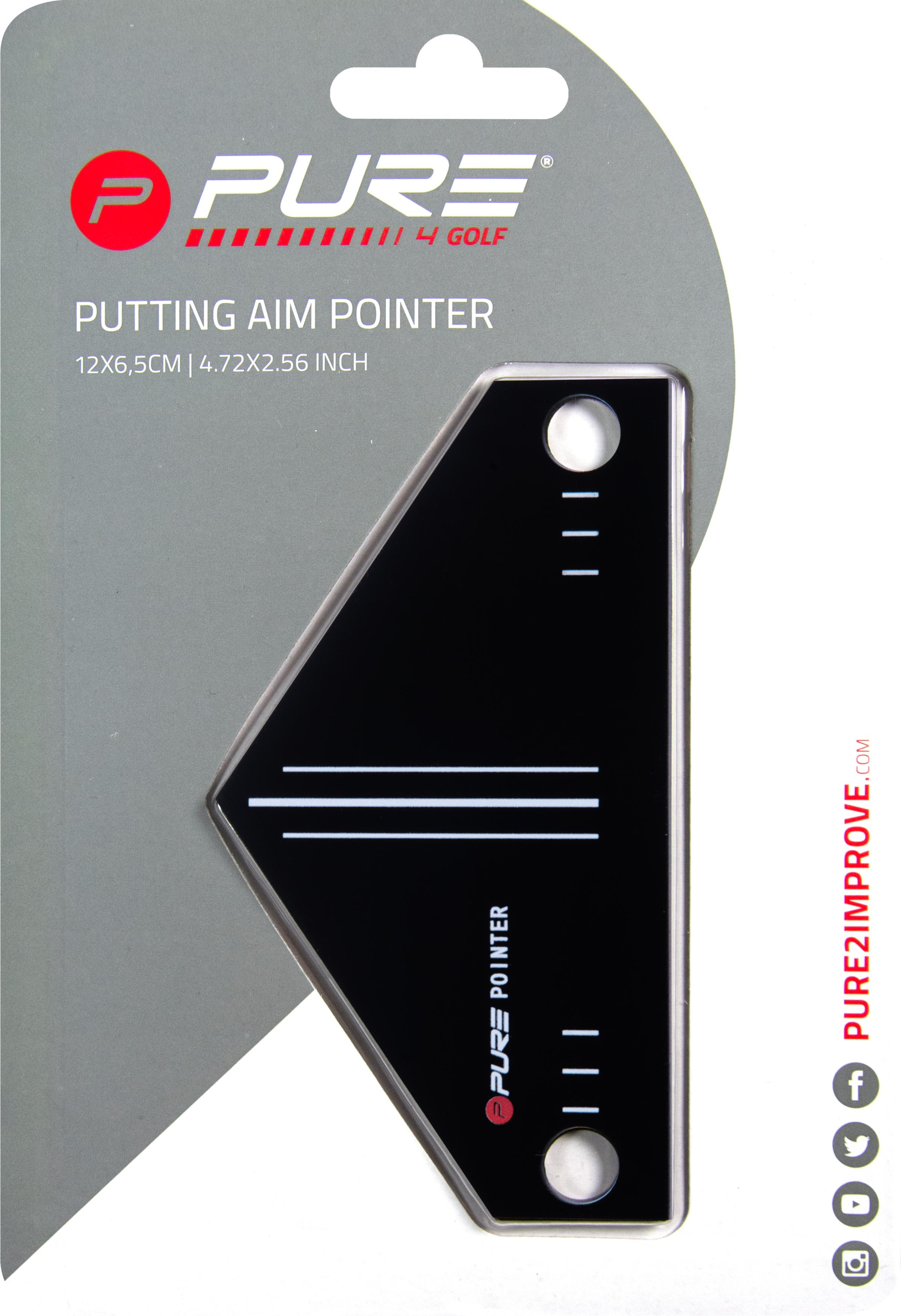 Pure 2Improve Putting Aim Pointer. A simple way to check your aim and line to the hole. Put the aim pointer against or under your putter to identify the perfect line. The Aim Pointer can be fixed to the green. Ideal in combination with the Pure 2Improve putting mats, ghost holes and alignment balls.