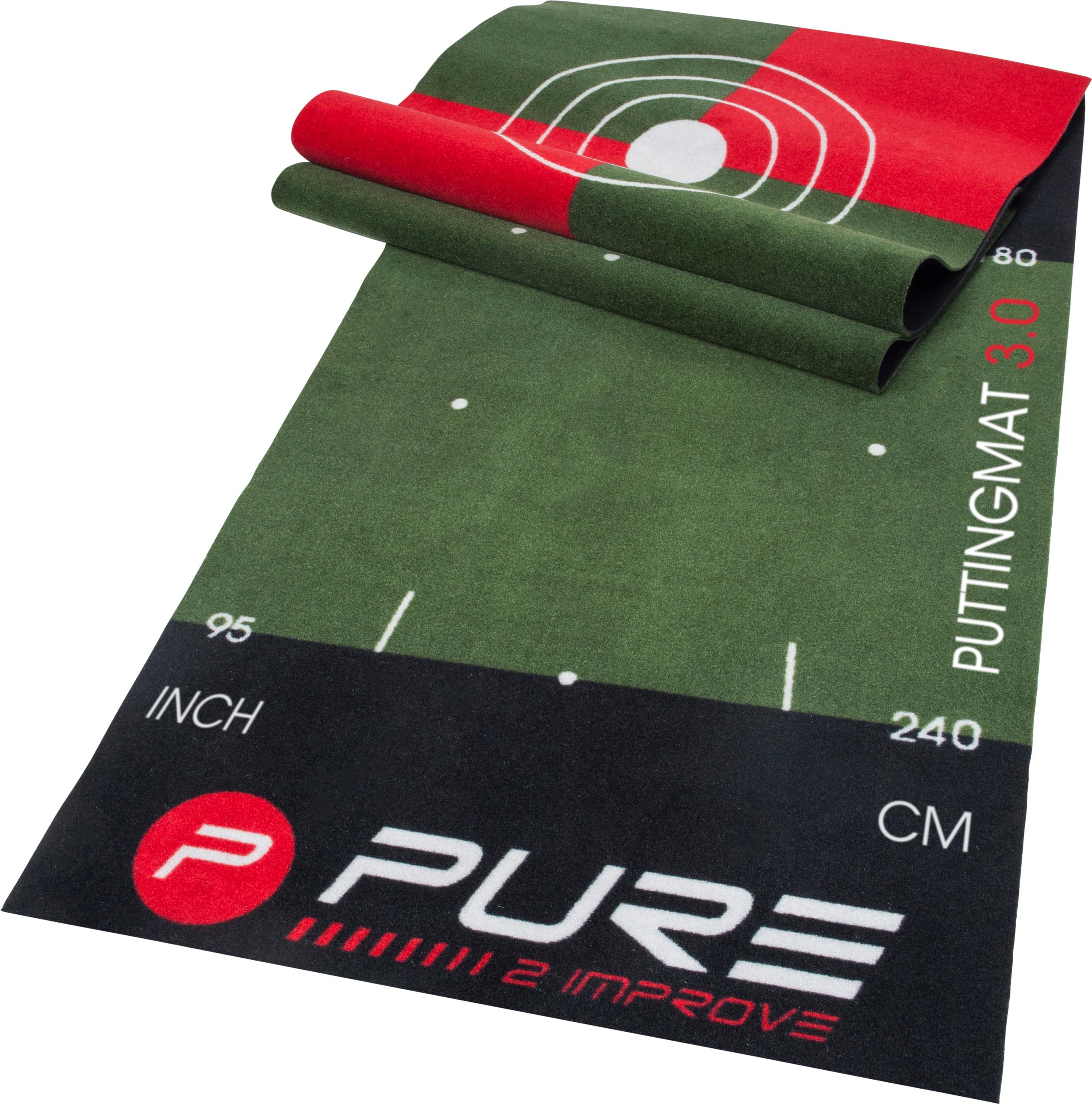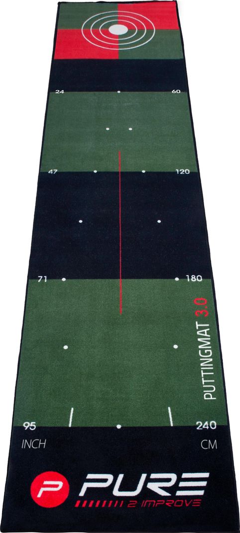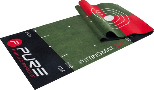 Pure 2Improve Golf Putting Mat 3.0, 65x300cm. Improve your putting game with this Pure 2Improve 3 meter putting mat. Different visual aids helps you to practice distance control, aim and has alignment aids to help you position correctly. The various dots on the surface are for different angles of approach. The surface of the mat is created to match the speed of a real green! Also ideal in combination with other Pure 2Improve golf training tools. Can be used by all players who want to improve their putting game.