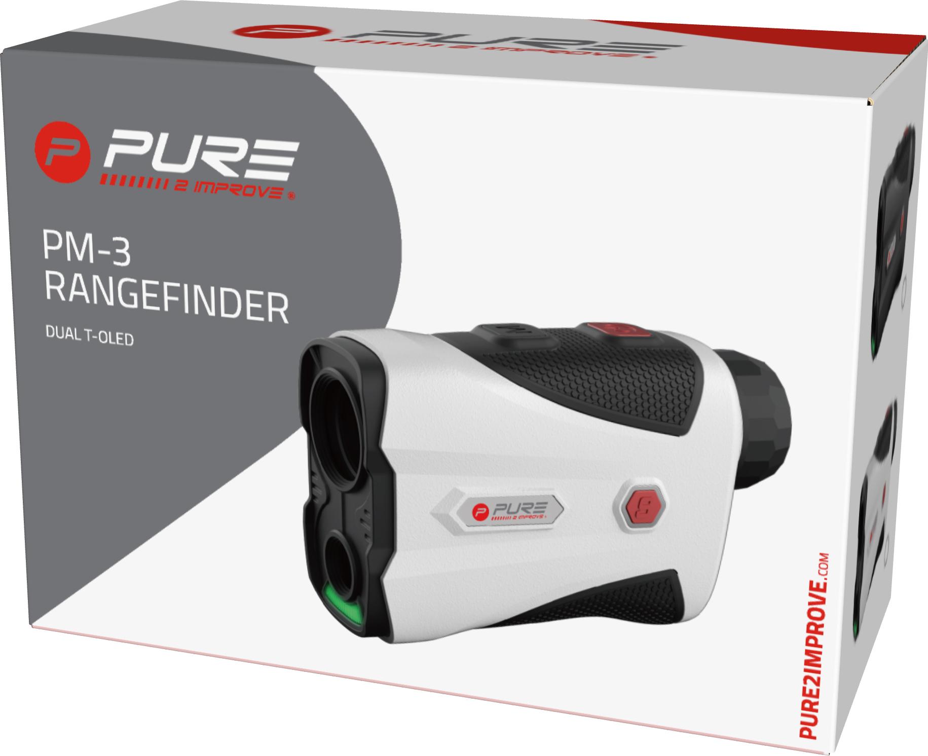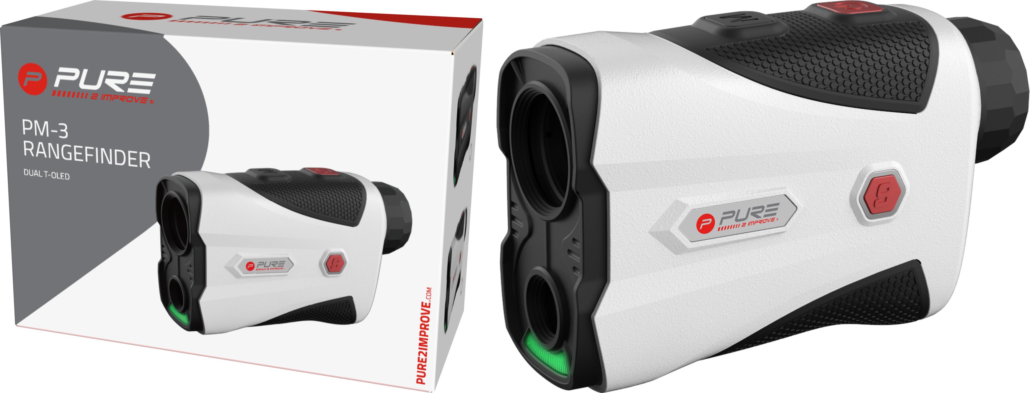 Pure2Improve Rangefinder Oled white/black. Improve your score with the latest technology of the Pure 2Improve O LED rangefinder. Easily get accurate distances by the touch of a button. Now you can hit with confidence using the right club for your game.