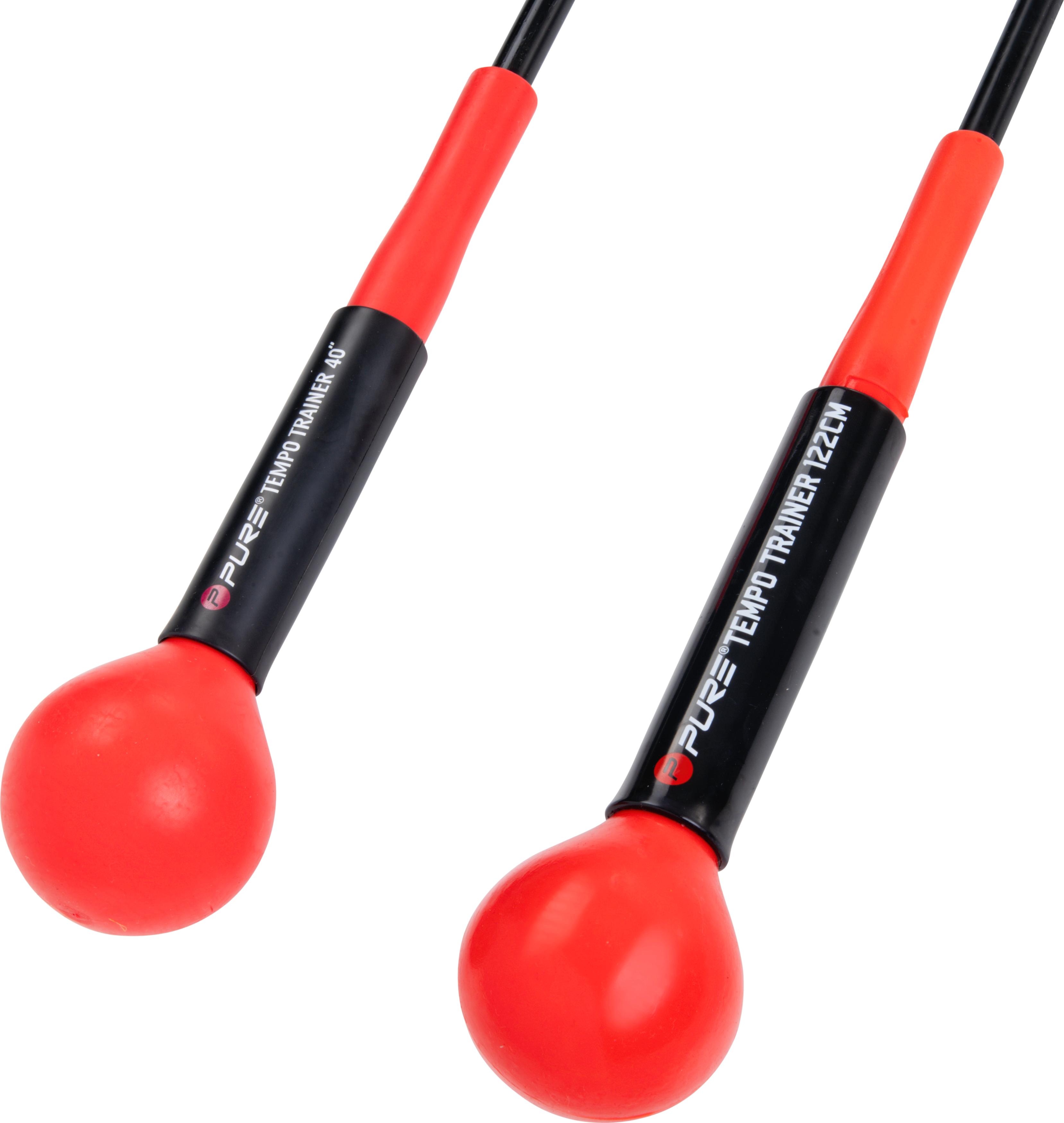 Pure2Improve Tempo Trainer. Flexible fiberglass shaft teached lags and helps eliminate early release. Head weight improves kinetic sequencing in the swing. Strengthens core golf muscles.