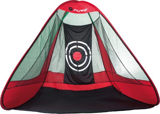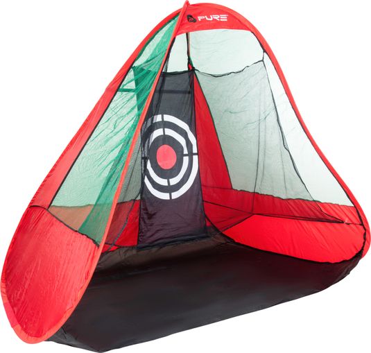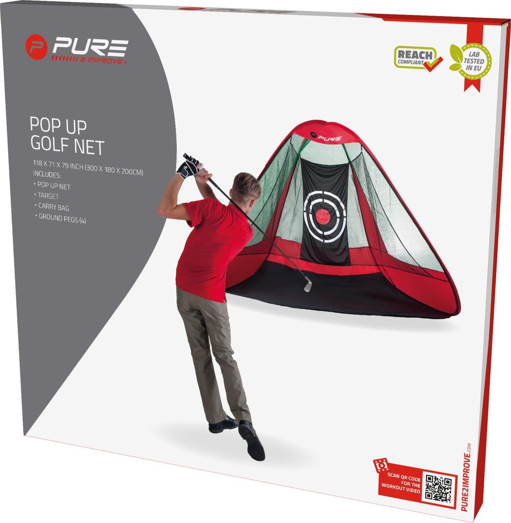 Pure 2Improve Triangle Pop-Up Golf Practice Net, 295x197x177 cm. Improve your skills with the Pure 2Improve Pop-up Practice Net. In just seconds you are ready for practice. Use the included target to adjust your swings or do a little competition. Ideal in combination with the Pure 2Improve hitting mats (not included). Set includes the practice net, ground pegs and a carry bag to easily bring it to and from your practice grounds. This net can be used by all kind of players.