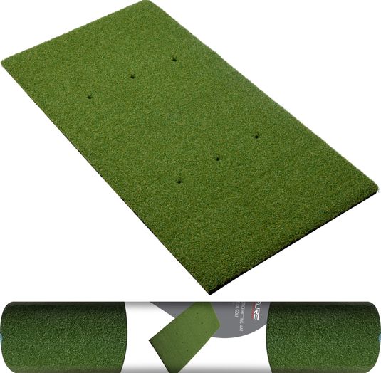 Pure 2Improve Hitting Mat, 90x150cm. Tired of smashing your lawn? Don't have a lawn? Then the Pure 2improve hitting mats are the best outcome for your practice sessions. This 90x150cm mat has 2 tee holes for rubber tees (tees and golf ball not included). Can be used in/outdoors in all weather conditions. Ideal in combination with the Pure 2improve practice and chipping nets.