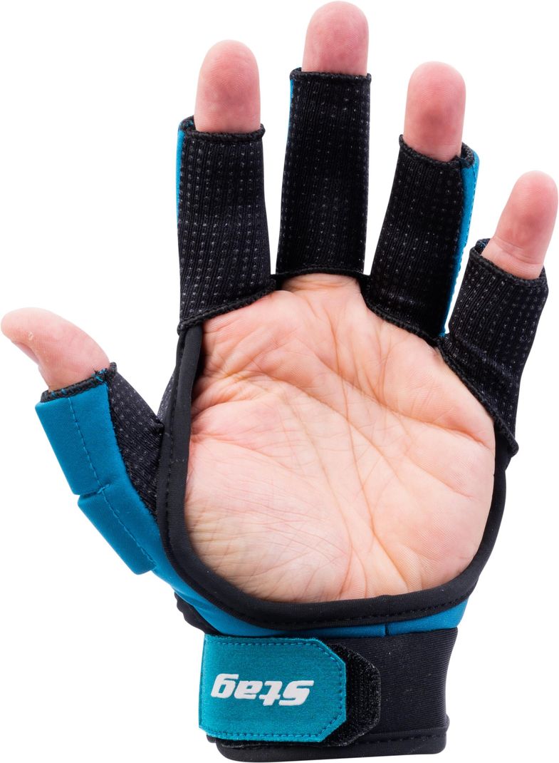 The Stag Marsh Glove Petrol is a half-finger glove with molded knuckle amour and clima grip palm. The high-density foam padding offers excellent impact resistance whilst the close-fitting Lycra construction improves stick handling skills.