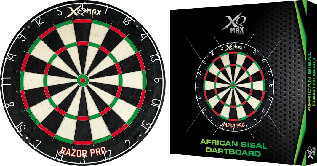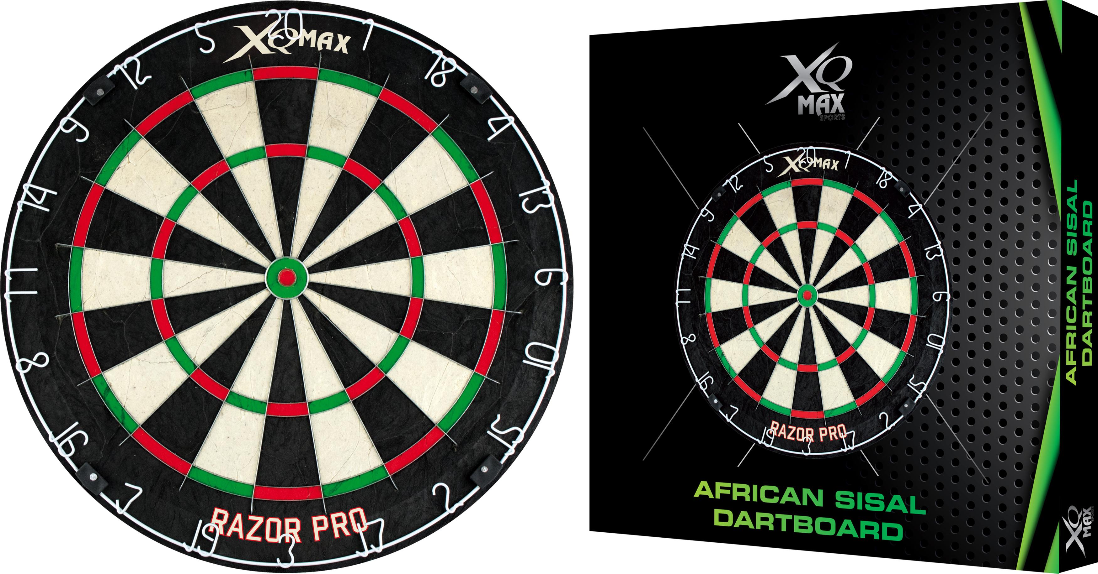 The XQMax razor pro dartboard is crafted from high-quality African sisal, designed for durability and precision.